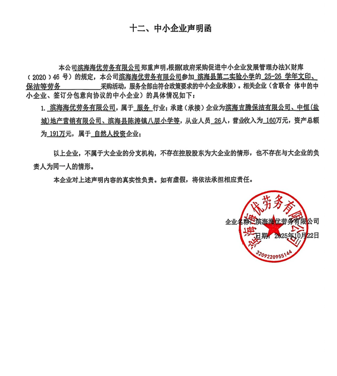 供应商名称:滨海海优劳务有限公司