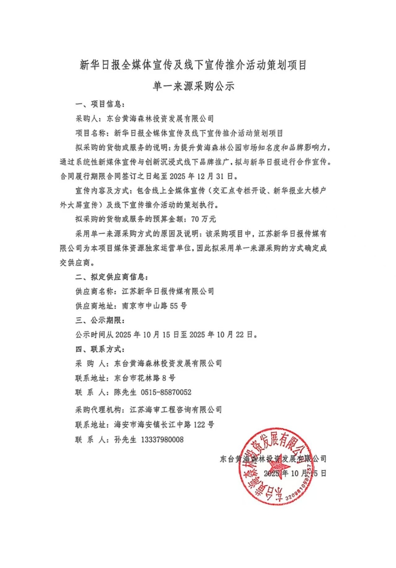 活动策划项目单一来源采购公示