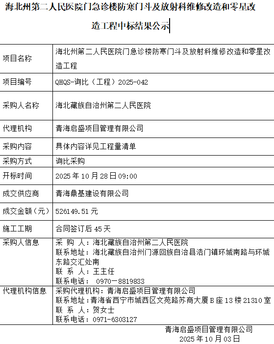 海北州第二人民医院门急诊楼防寒门斗及放射科维修改造和零星改造工程
