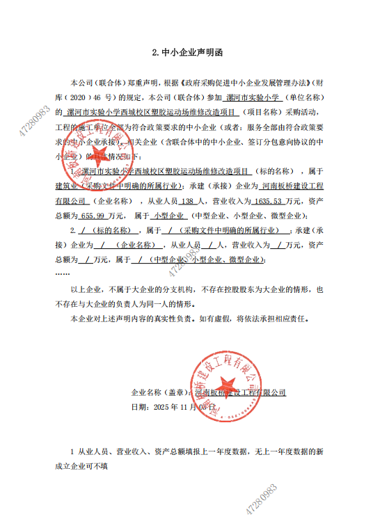 | *、采购项目名称:漯河市实验小学西城校区塑胶运动场维修改造项目 | |||||||||||||||||||||||||||||||