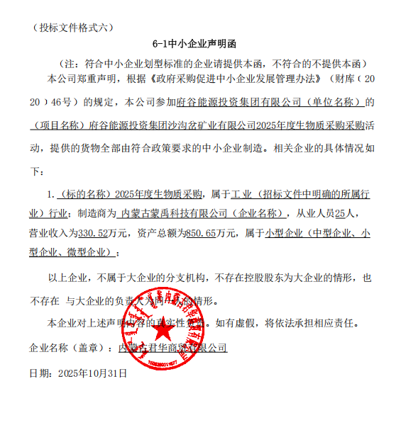 府谷能源投资集团沙沟岔矿业有限公司2025年度生物质采购中标结果公告