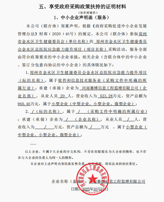 郑州市金水区卫生健康委员会金水区总医院应急能力提升项目-中标公告