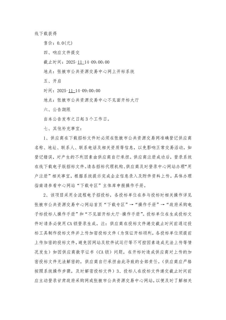 甘肃/张掖 招标采购