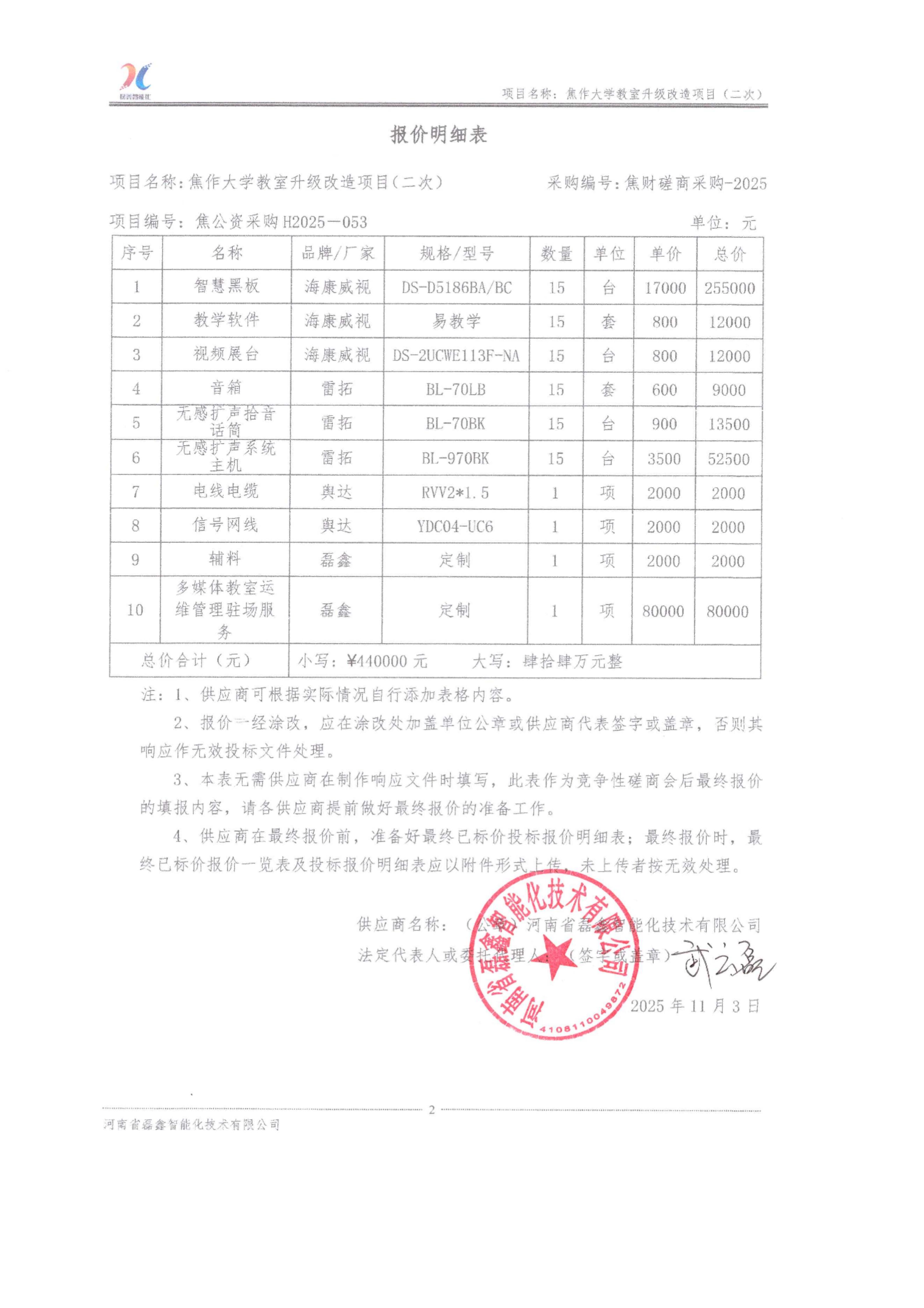 | *、采购项目名称:焦作大学教室升级改造项目 | |||||||||||||||||||||||||||||||