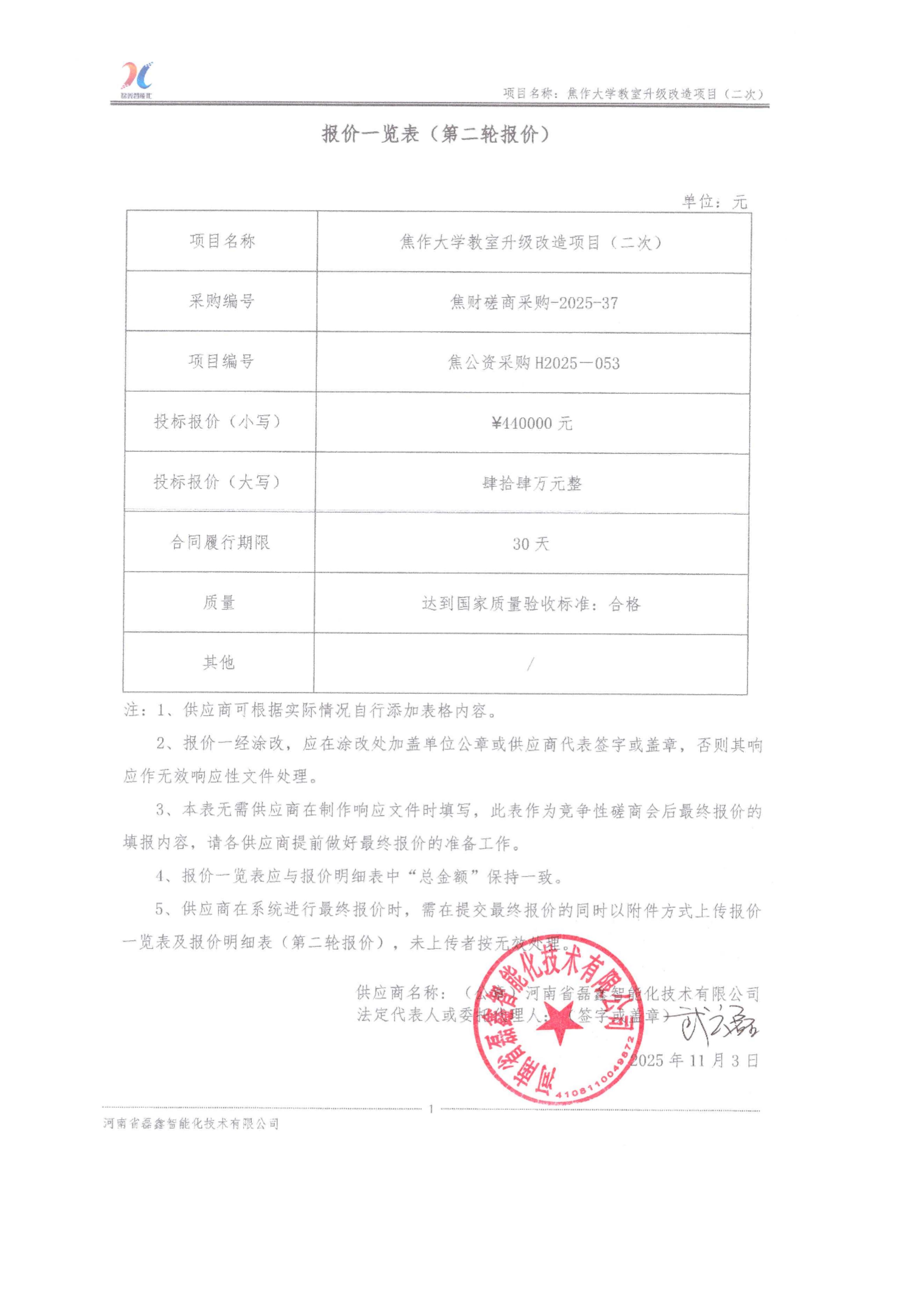 焦作大学教室升级改造项目(二次) 成交结果公告