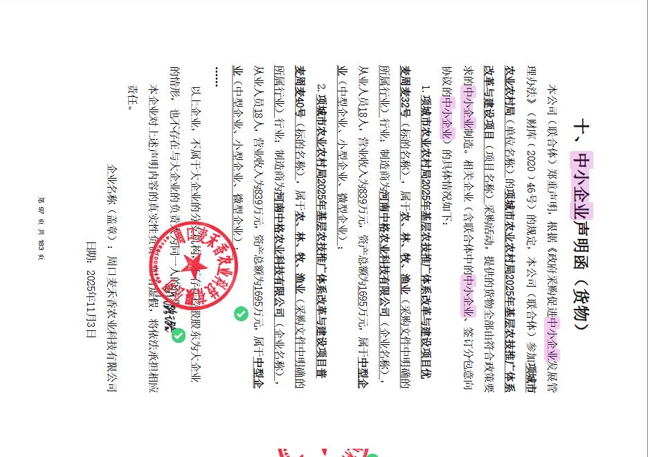 项城市农业农村局2025年基层农技推广体系改革与建设项目-成交公告