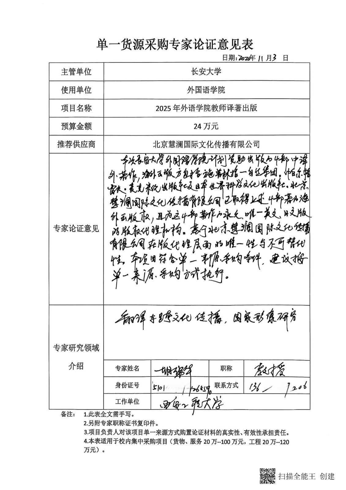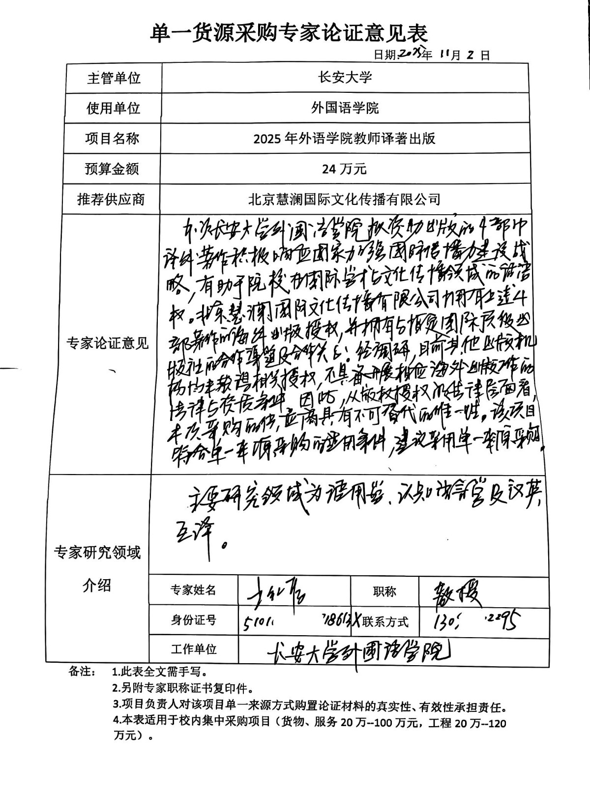 项目名称:****年外语学院教师译著出版采购项目拟采取单一来源方式采购。