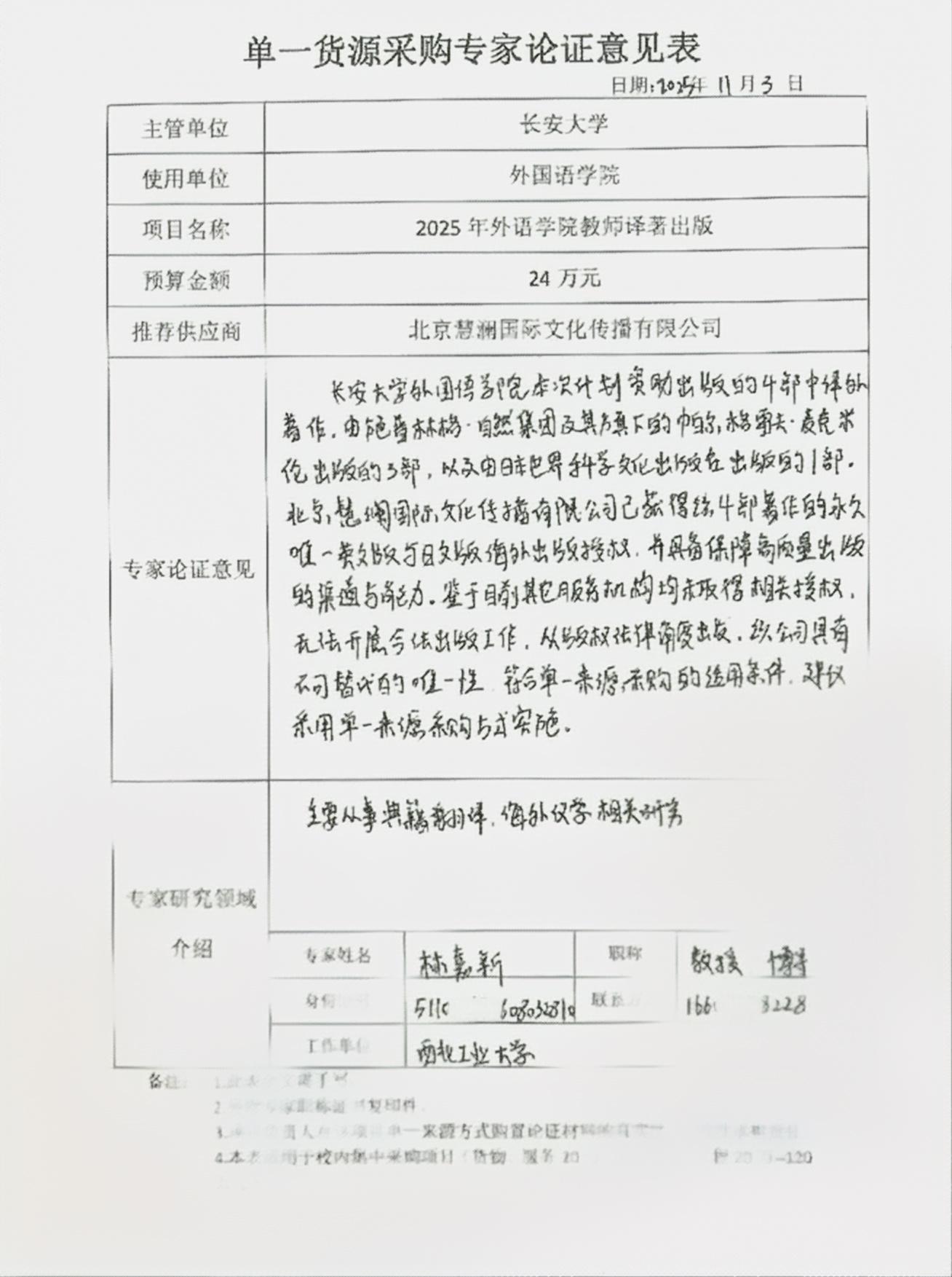 2025年外语学院教师译著出版采购项目单一来源采购公示