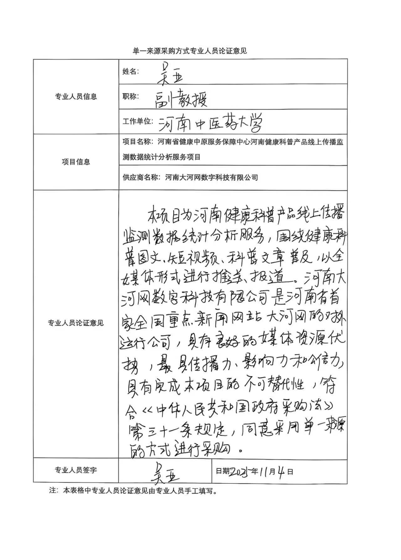 | 围绕“切实推动卫生健康行业‘科普惠民’,让群众会防病、少生病,从而提高全省居民的生活质量和健康水平。”依据《河南省健康科普产品发布传播实施方案》,拟与河南大河网数字科技有限公司(大河网)合作实施河南健康科普产品线上传播监测数据统计分析服务项目,围绕健康科普图文、短视频、科普文章普及,以全媒体形式,进行推送、报道。 作为河南省管国有骨干企业大河网络传媒集团有限公司的全资子公司,河南大河网数字科技有限公司是河南省首家全国重点新闻网站大河网的对外运营公司。大河网由中共河南省委宣传部主管、河南日报报业集团主办,同时也是河南第一大门户网站,形成了纸媒、网站、客户端、移动端合一的全媒体矩阵。具有良好的社会信誉、媒体资源优势,最具传播力、影响力、引导力、公信力,具有唯一性,具备完成本项目需求的资源优势和不可替代性,符合《中华人民共和国政府采购法》第三十一条规定,拟采用单一来源方式采购。 | ||||||||||||||||