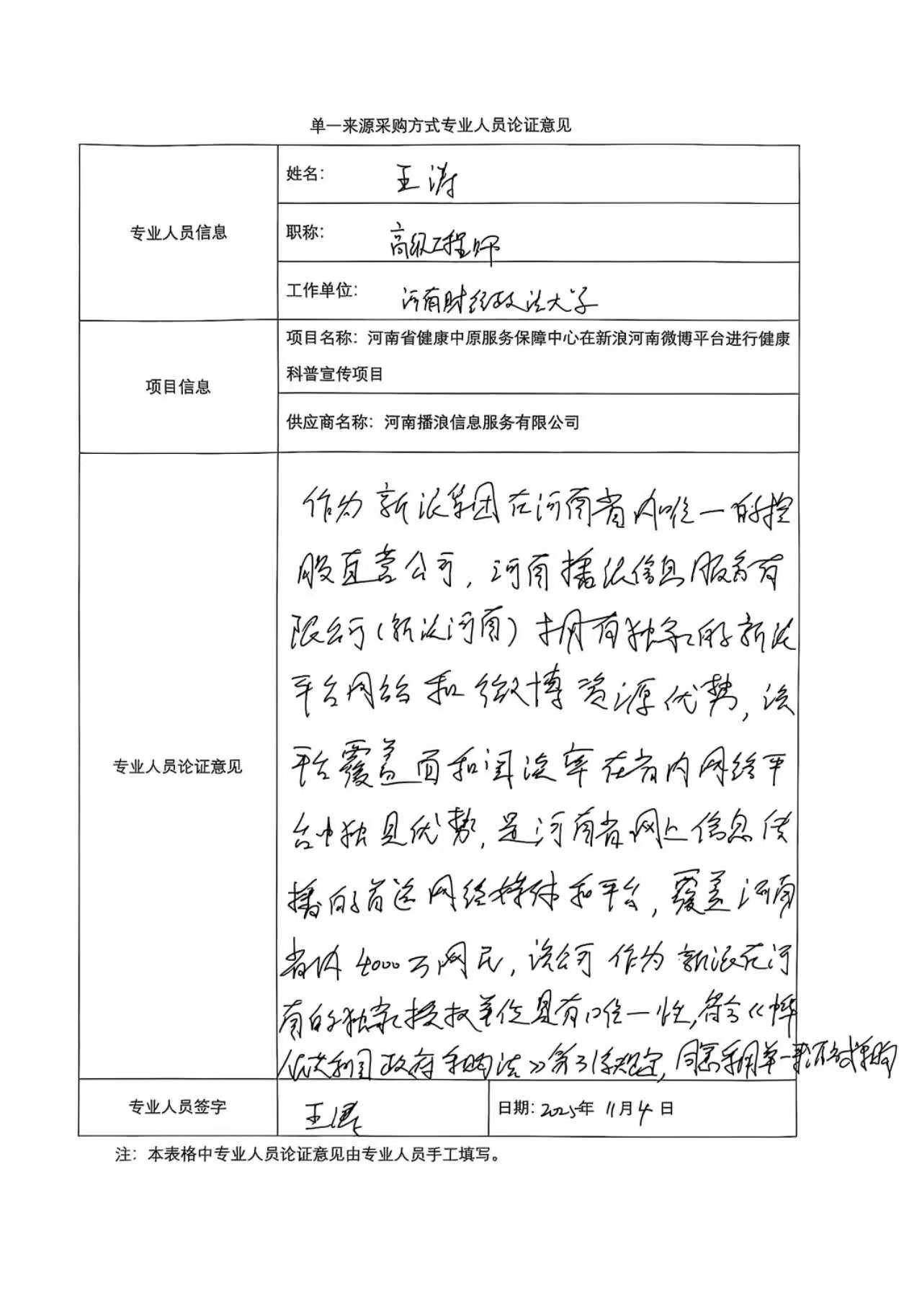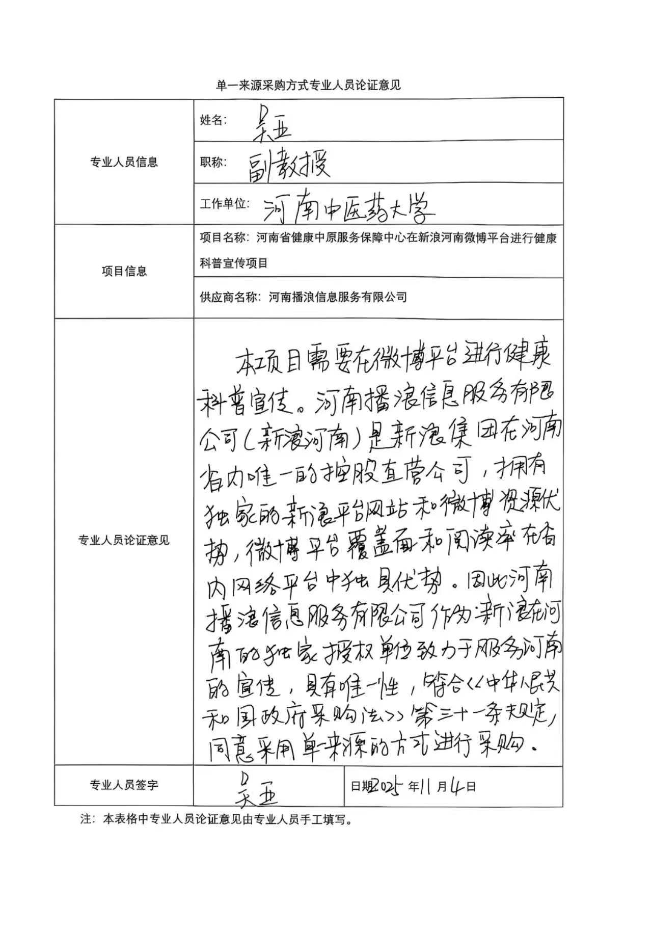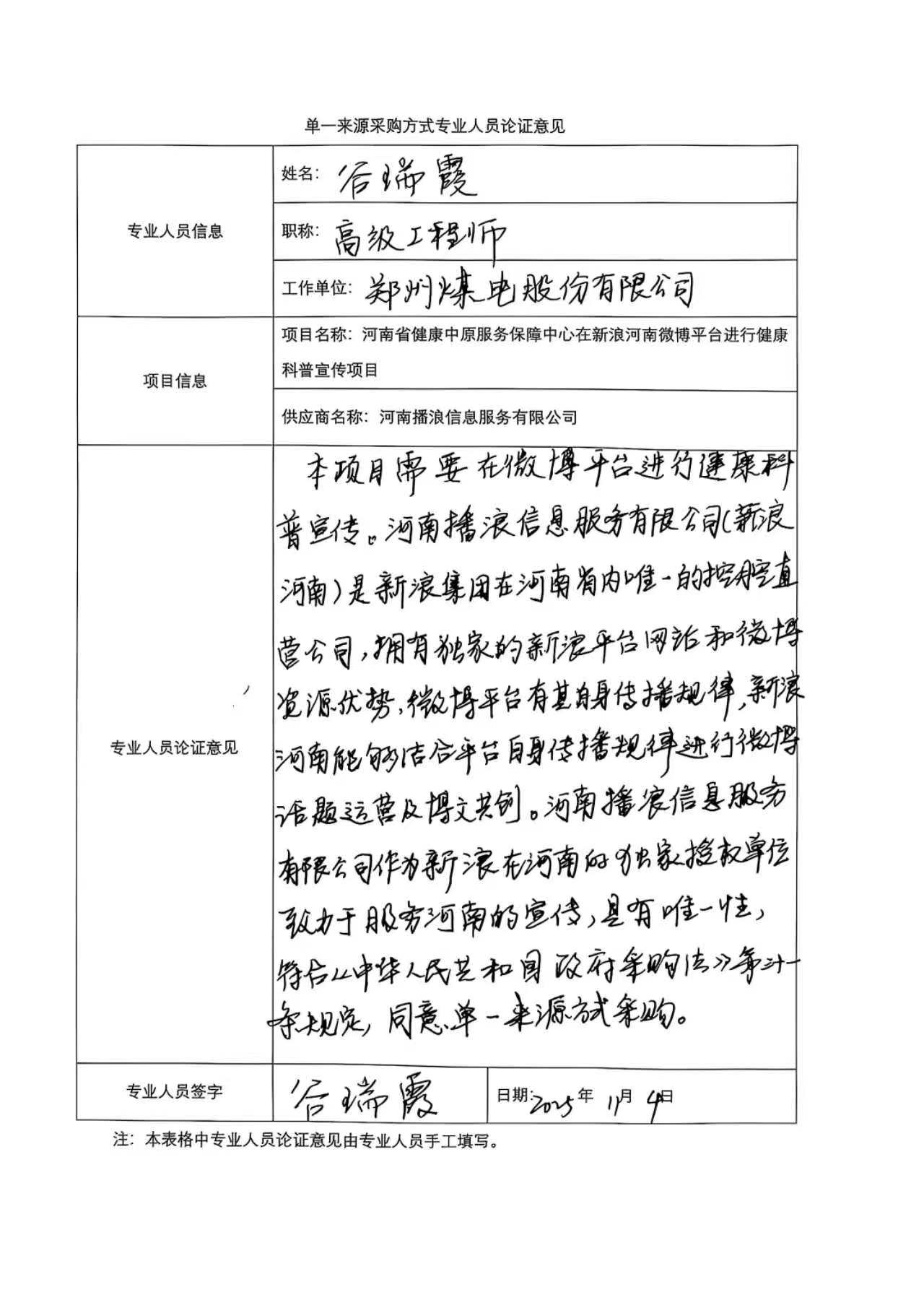 河南省健康中原服务保障中心在新浪河南微博平台进行健康科普宣传项目单一来源采购公示