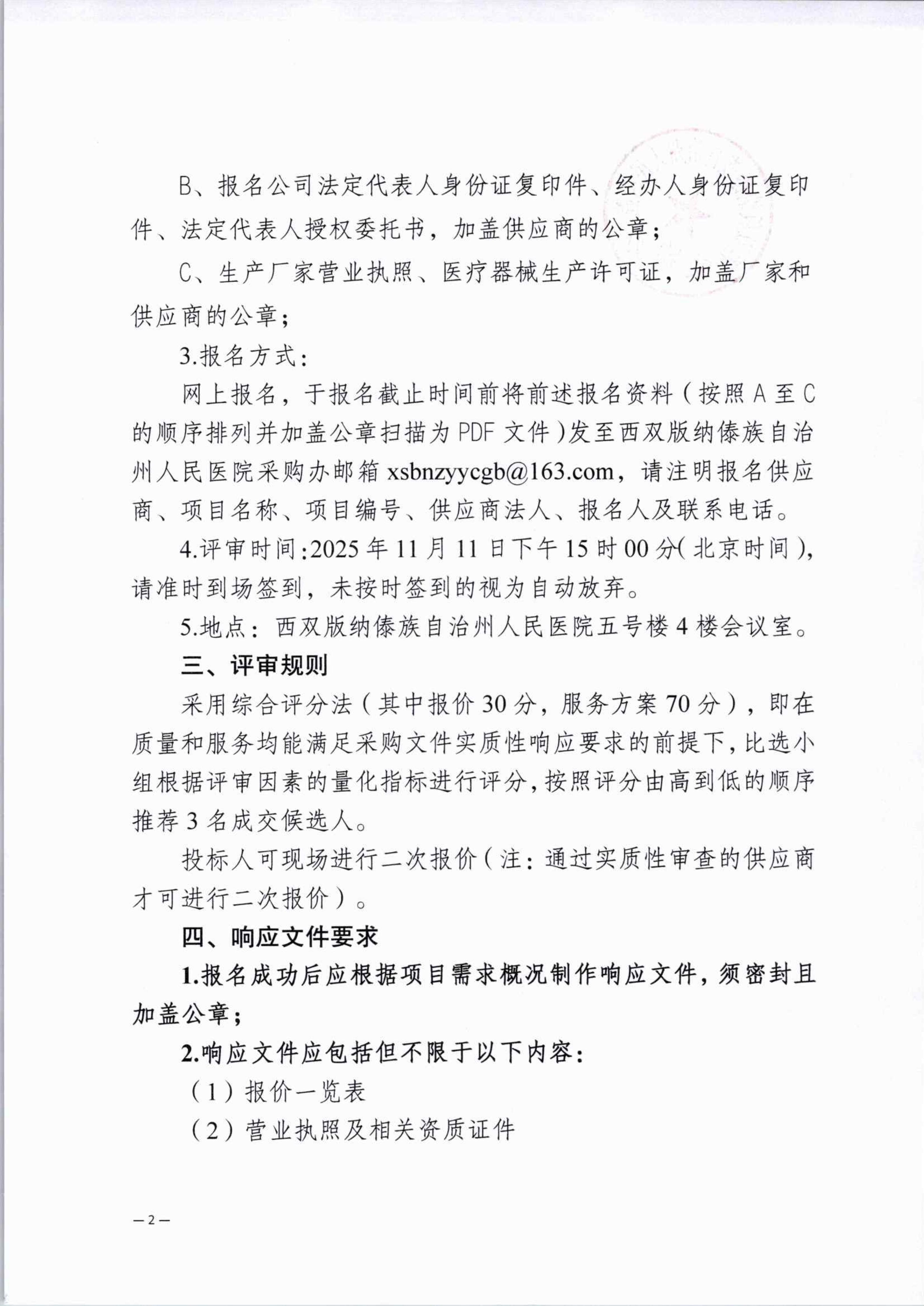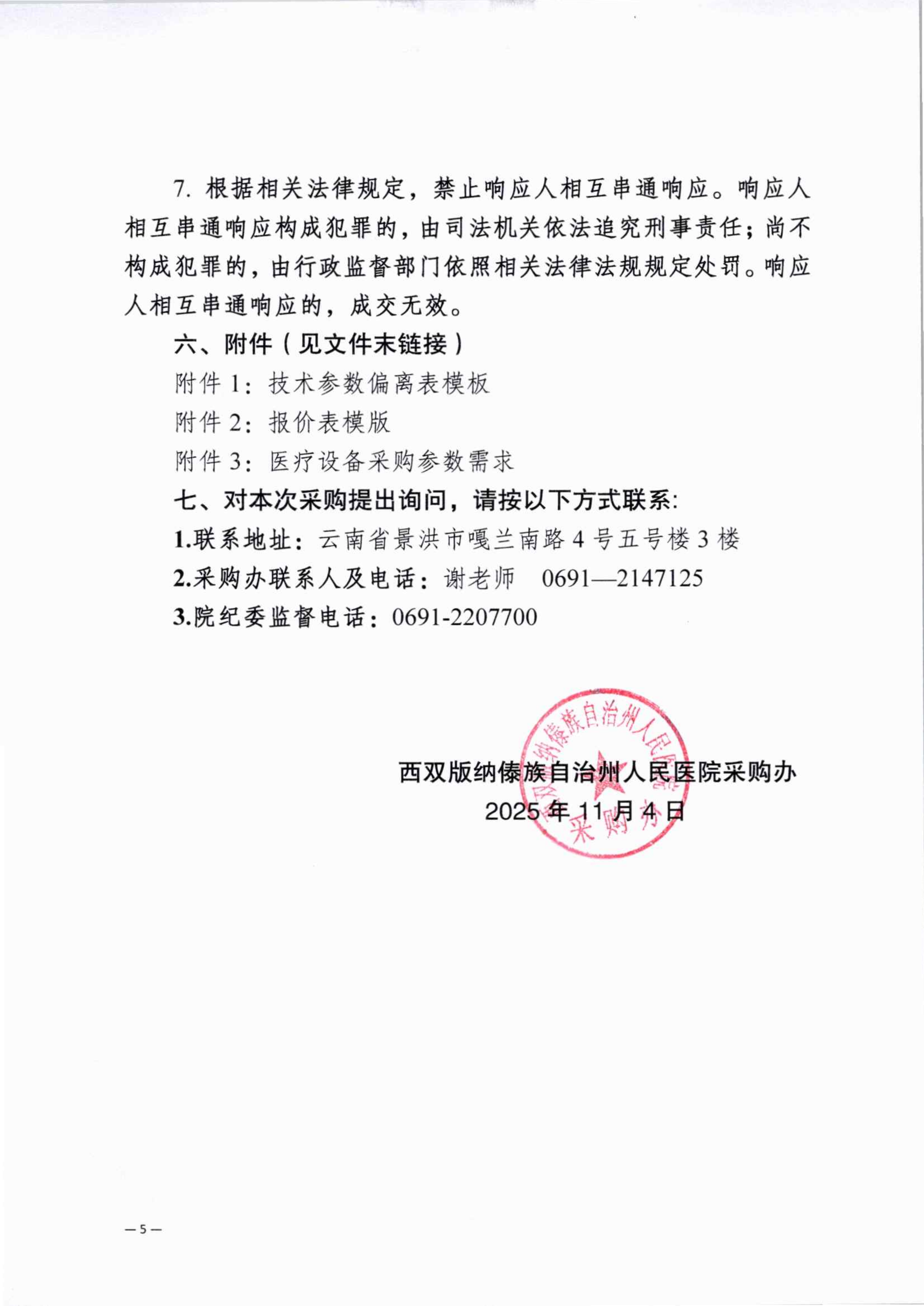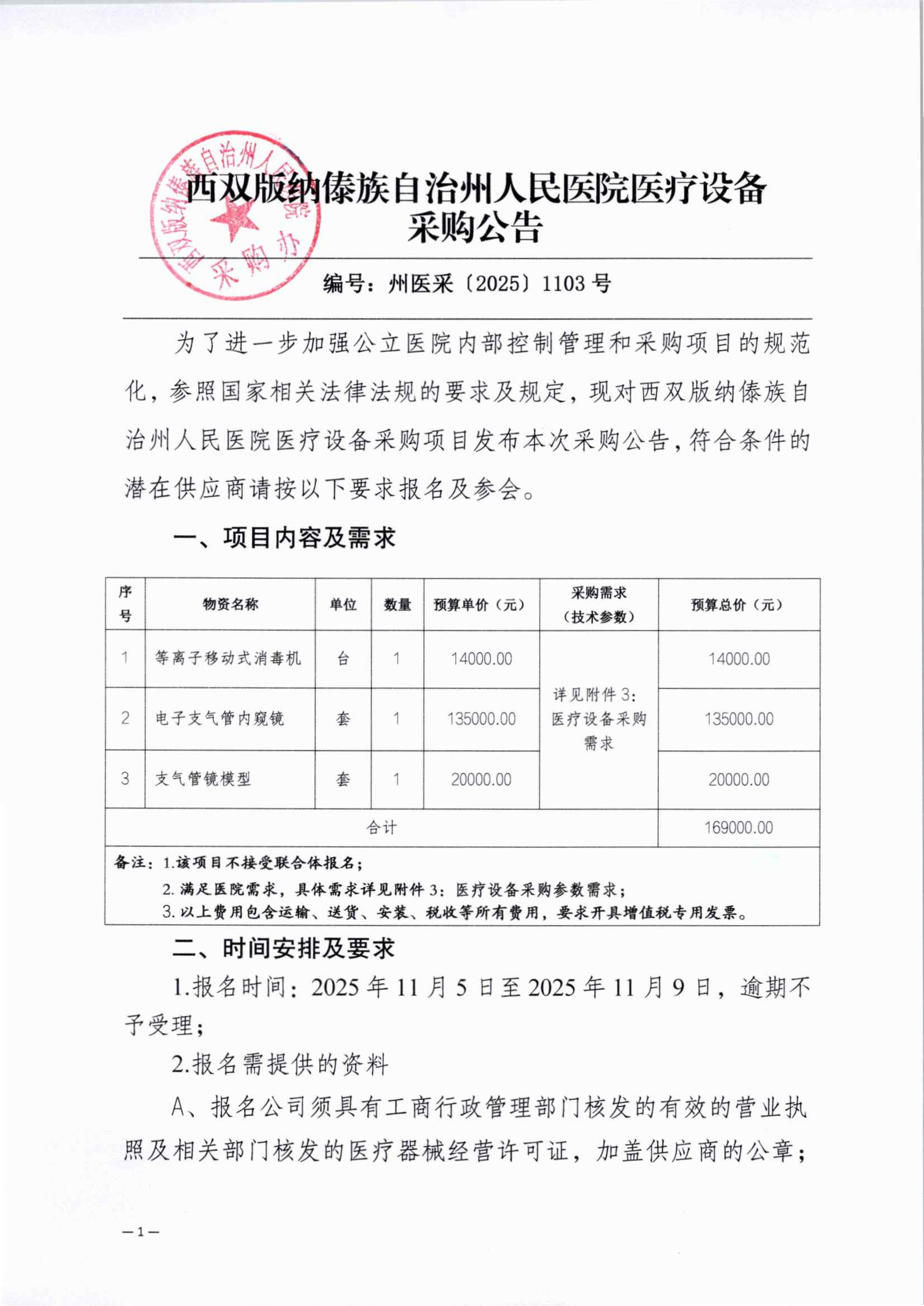 西双版纳傣族自治州人民医院医疗设备采购公告