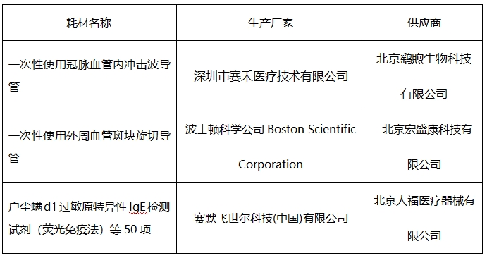 经医院医用耗材管理委员会及临床专家审议,确定最终遴选结果为: