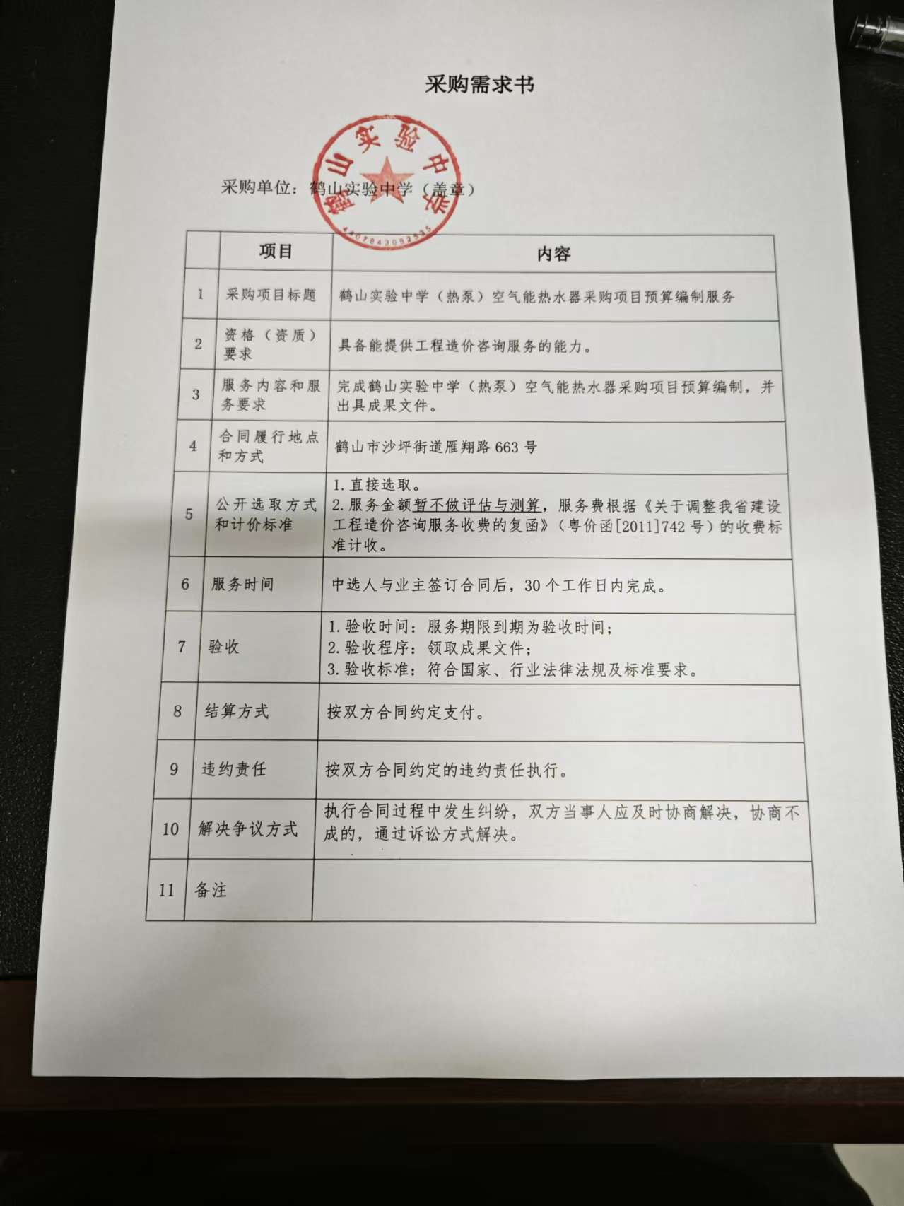 关于为【鹤山实验中学(热泵)空气能热水器采购项目预算编制服务】公开选取【工程造价咨询】机构的公告
