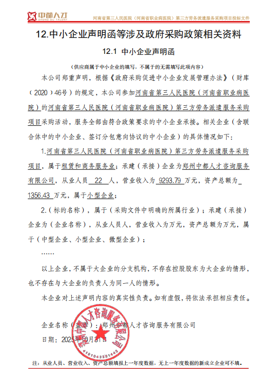 | *、采购项目名称:河南省第三人民医院(河南省职业病医院)第三方劳务派遣服务采购项目 | |||||||||||||||||||||||||||||||