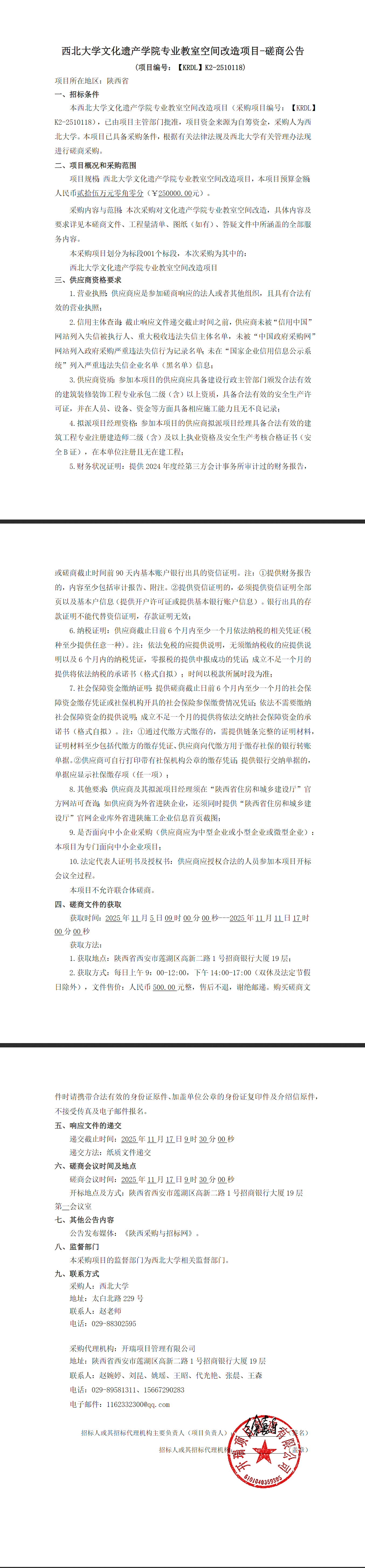 西北大学文化遗产学院专业教室空间改造项目-磋商公告
