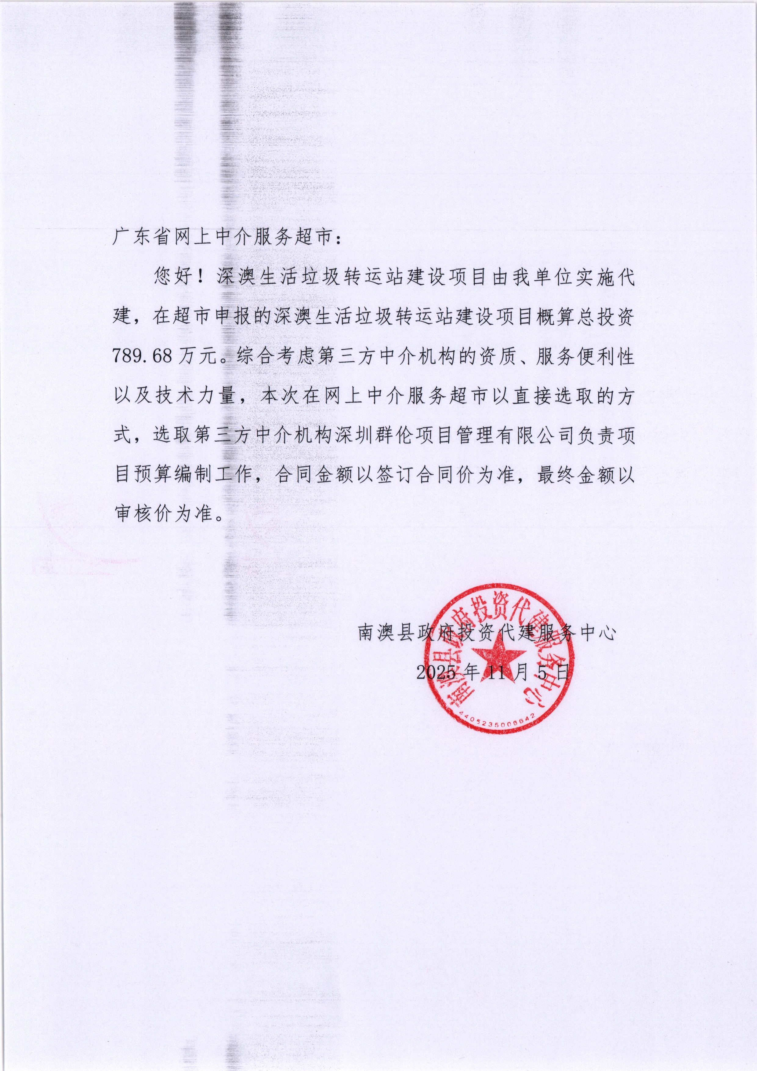 深澳生活垃圾转运站建设项目预算编制中选公示