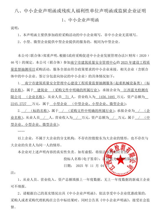 (*)分标*中标人江西蓝光检测有限公司综合得分 **.**;分标*中标人广西鑫晨特种设备检测有限公司综合得分:**.**分。
