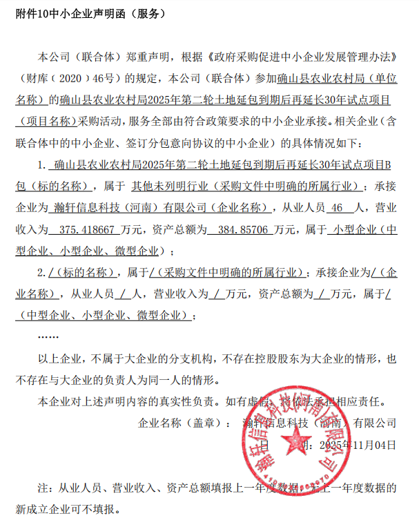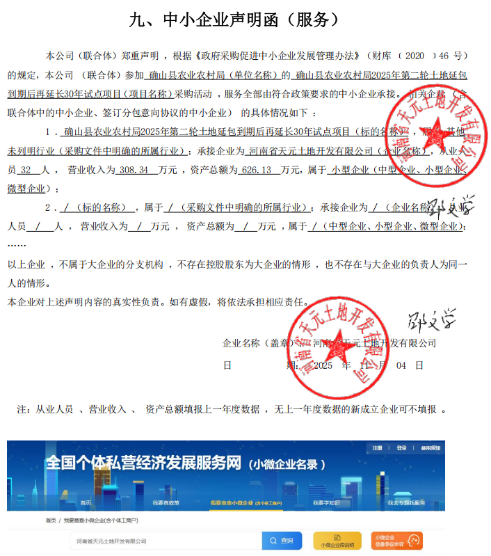 确山县农业农村局2025年第二轮土地延包到期后再延长30年试点项目-中标公告