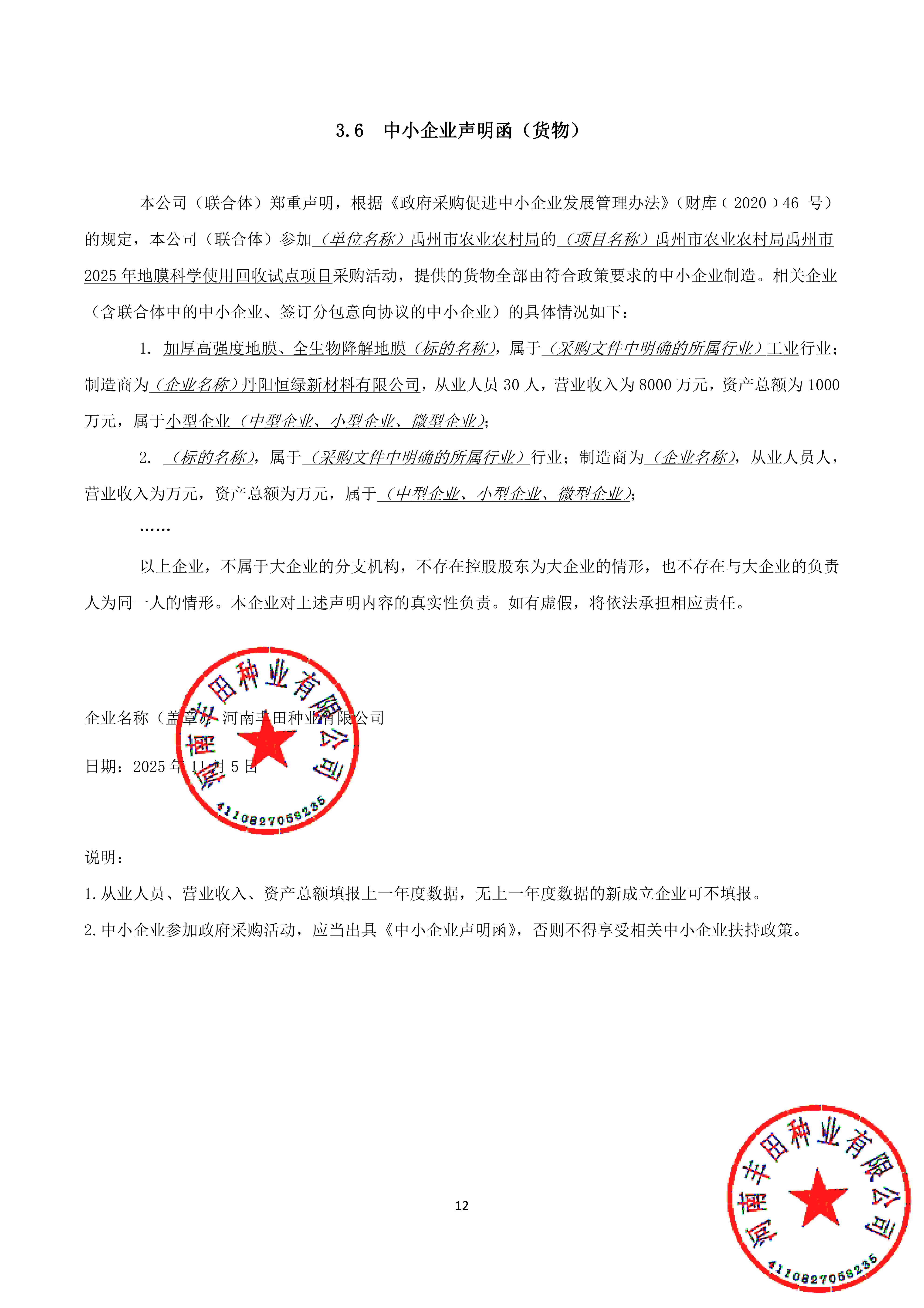 | *、采购项目名称:禹州市农业农村局禹州市****年地膜科学使用回收试点项目 | |||||||||||||||||||||||||||||||