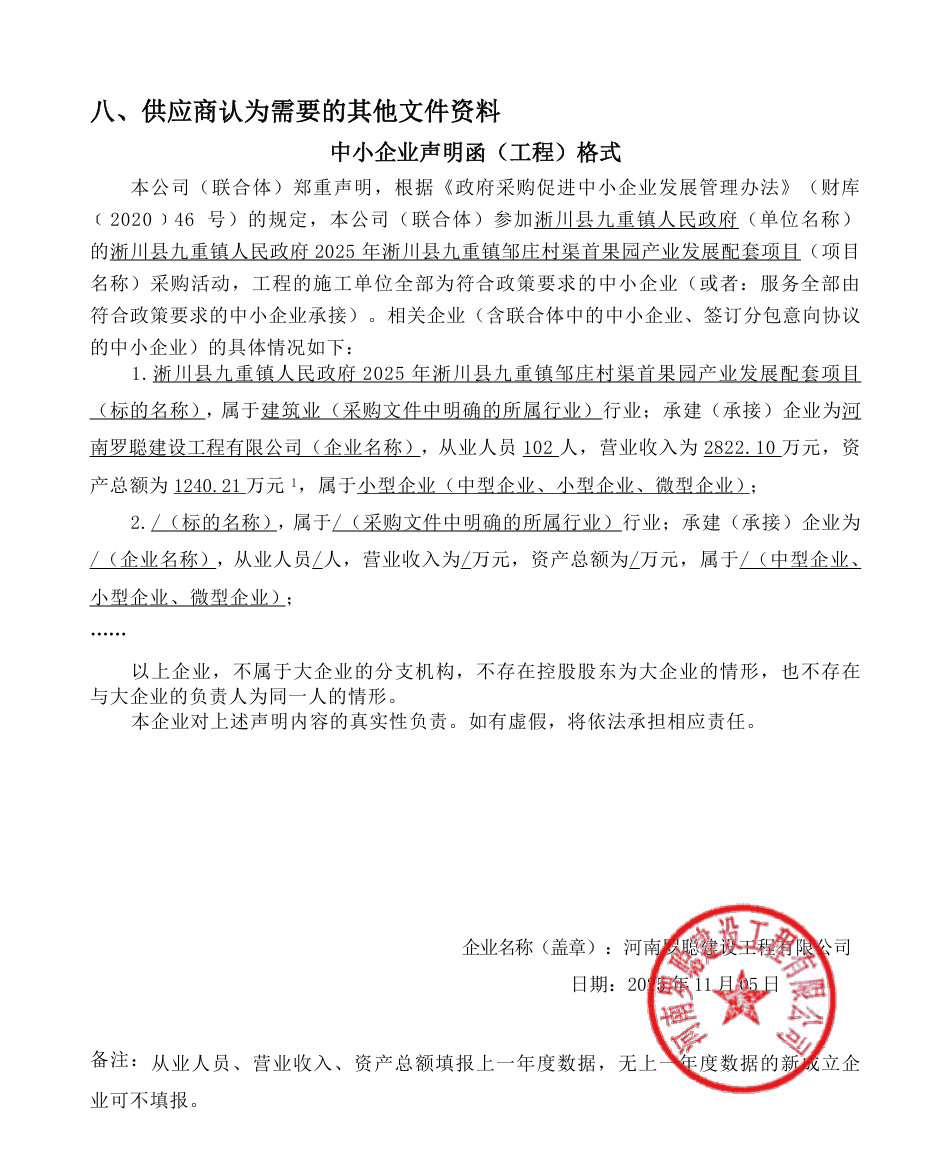 淅川县九重镇人民政府2025年淅川县九重镇邹庄村渠首果园产业发展配套项目-成交公告