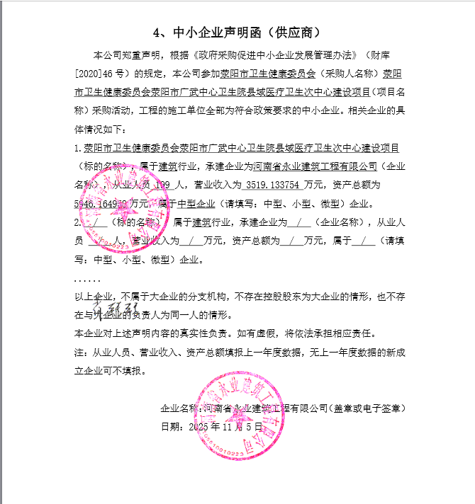 荥阳市卫生健康委员会荥阳市广武中心卫生院县域医疗卫生次中心建设项目*成交公告