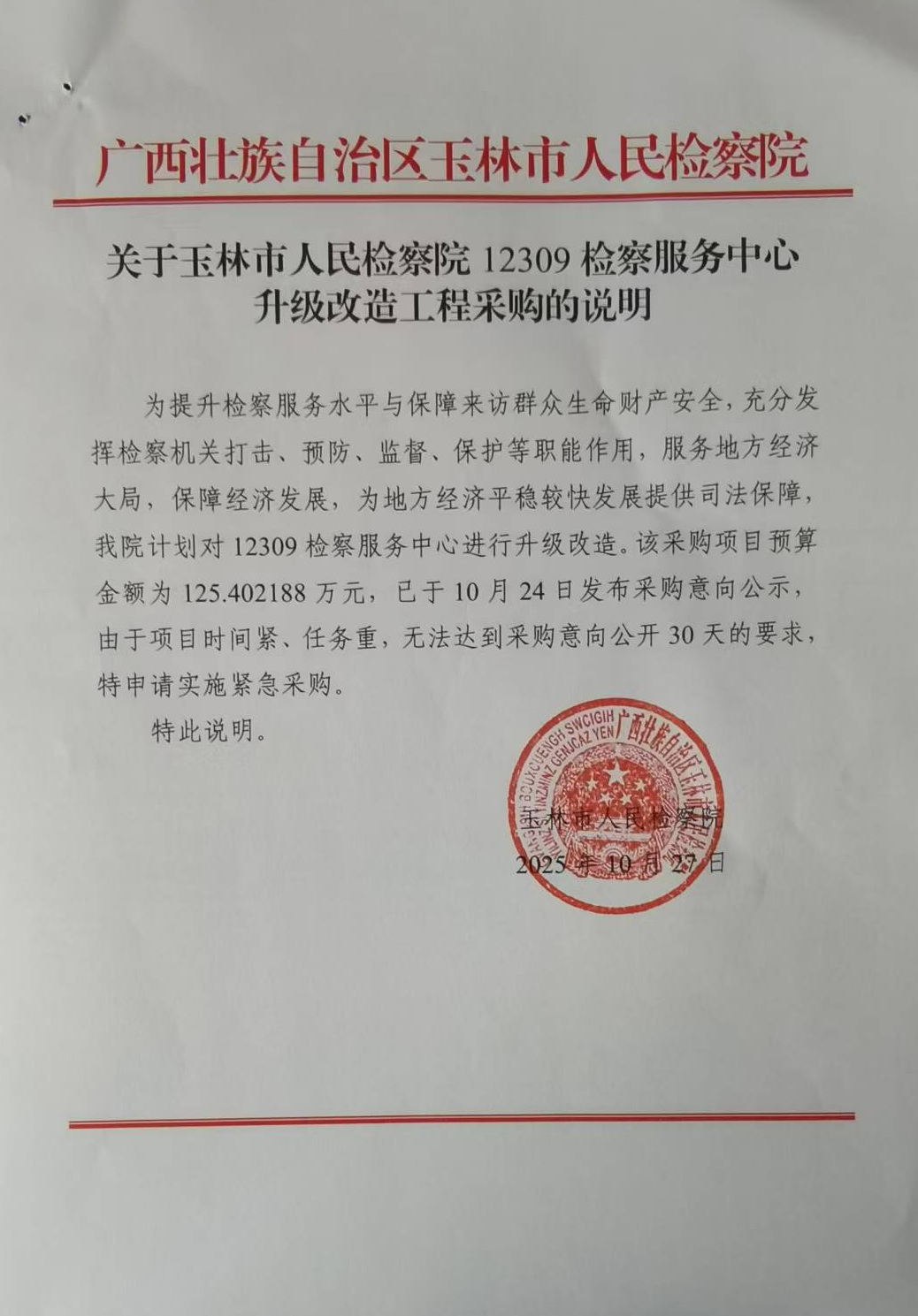 广西建都工程项目管理有限公司关于玉林市人民检察院*****检察服务中心升级改造工程的竞争性磋商公告