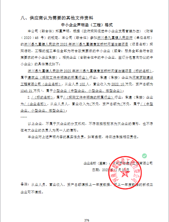 淅川县九重镇人民政府2025年淅川县九重镇唐王桥村河道治理项目-成交公告