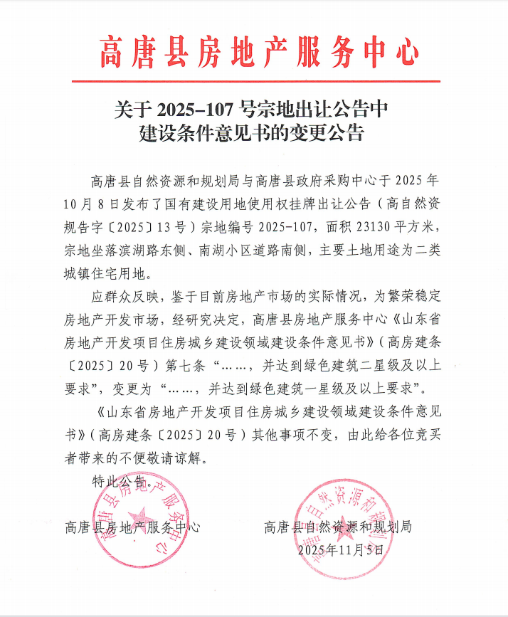高自然资规告字[2025]13号关于2025-107号宗地(变更公告)