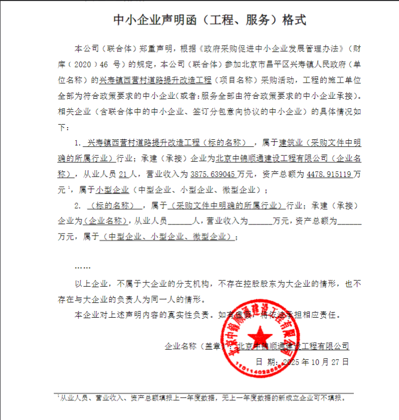 [昌平区]兴寿镇西营村道路提升改造工程成交公告