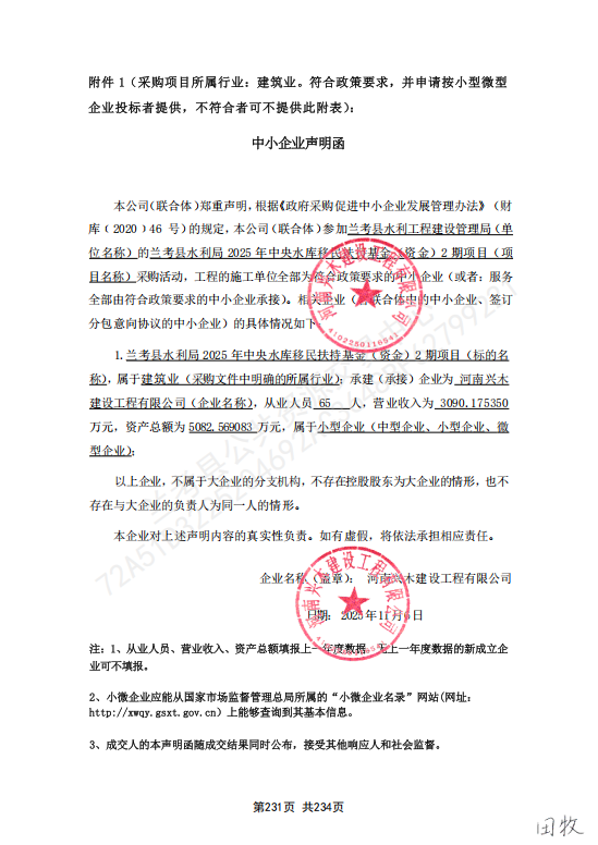 兰考县水利局2025年中央水库移民扶持基金(资金)2期项目第二标段-成交公告