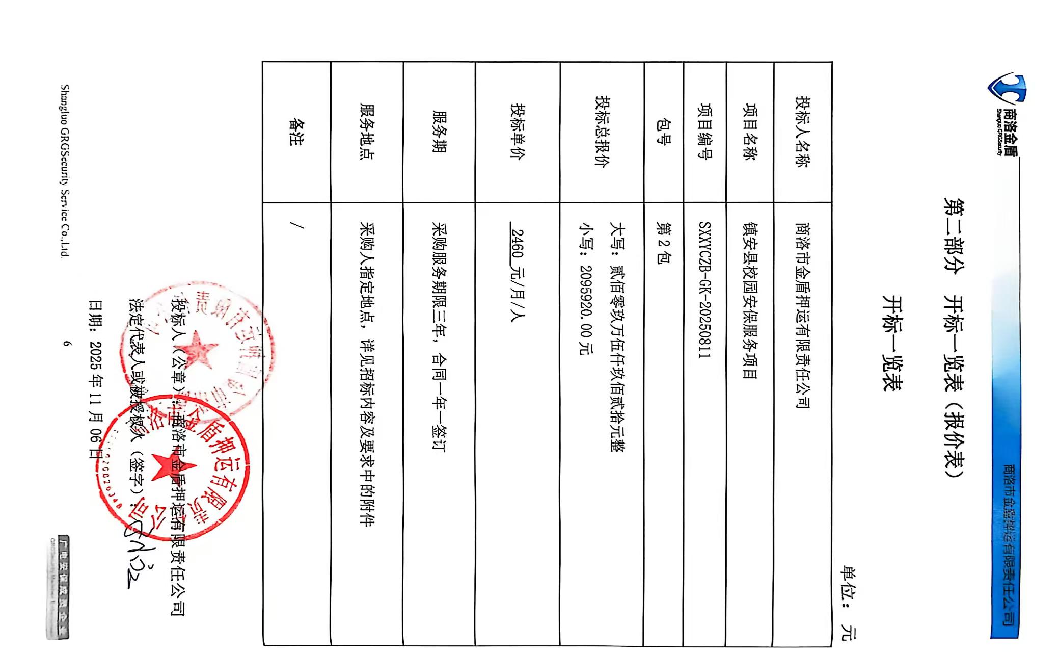 | * | 其他安全保护服务 | 西部片区 | 镇安县校园安保服务项目西部片区 | 满足采购人服务要求 | 采购服务期限三年,合同一年一签订 | 满足采购人服务标准 | *,***,***.** |