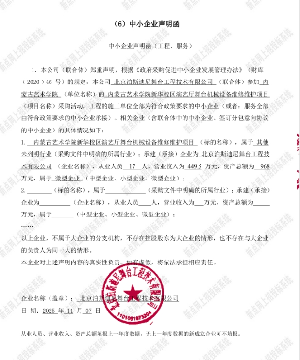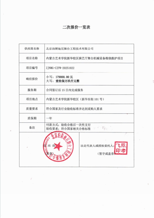 内蒙古艺术学院新华校区演艺厅舞台机械设备维修维护项目,详见响应文件 |