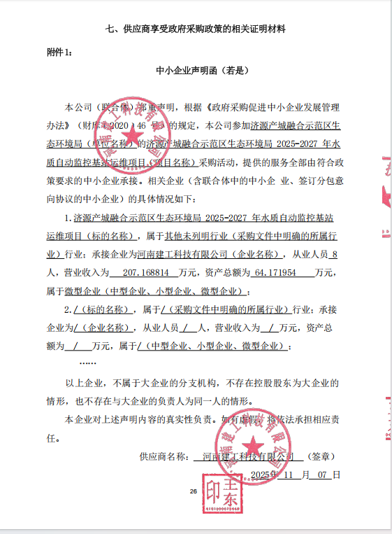 济源产城融合示范区生态环境局2025-2027年水质自动监控基站运维项目-成交公告