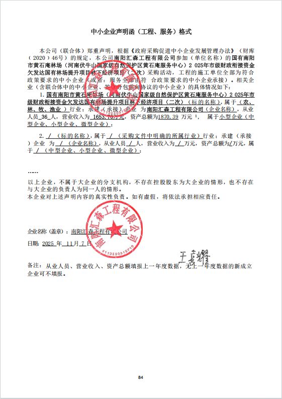 国有南阳市黄石庵林场(河南伏牛山国家级自然保护区黄石庵服务中心)2025年市级财政衔接资金欠发达国有林场提升项目林下经济项目(二次)-成交公告
