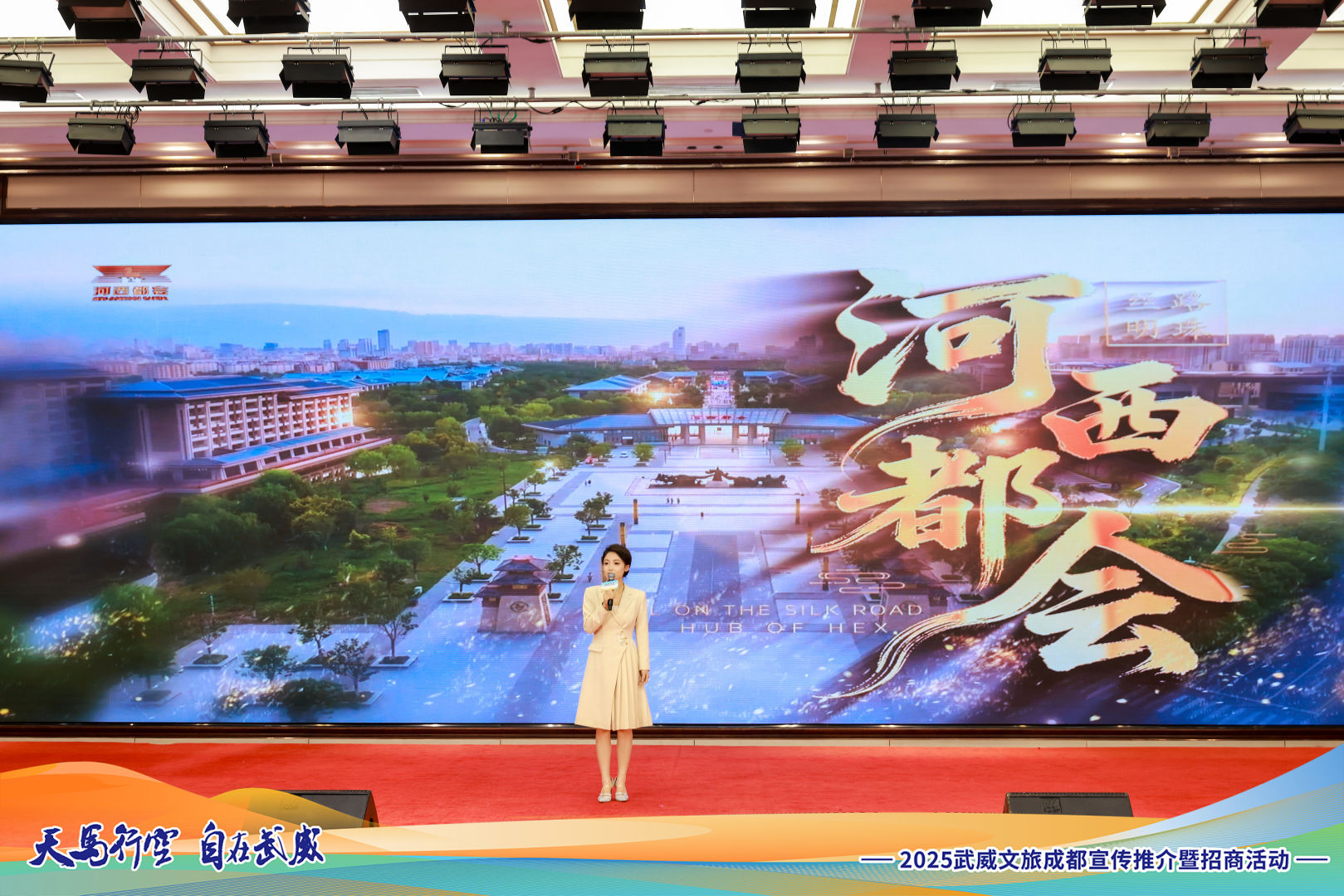 **月**日,“天马行空·自在武威”文旅宣传推介招商活动在成都成功举办。活动全面展示了武威丰富的文化旅游资源,深化区域合作,吸引更多四川乃至西南地区的游客和投资者关注武威、走进武威。作为武威市重点文旅项目,河西都会在推介会上压轴登场,以其独特的文化魅力和广阔的发展前景,为此次招商活动画上了浓墨重彩的一笔。