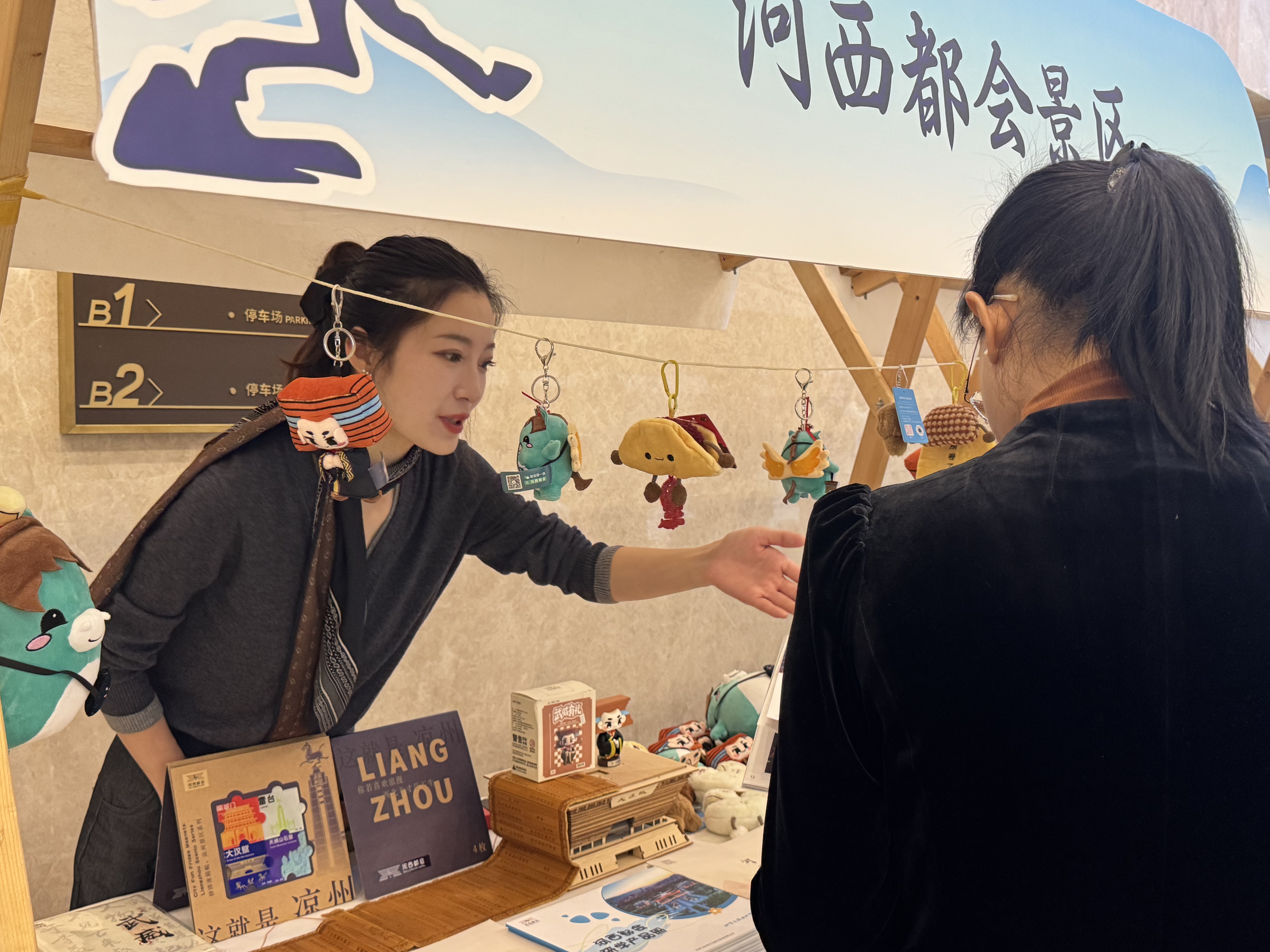 推介会现场,“汉小宝和汉小马”毛绒玩具、非遗纸雕便签纸、凉州词竹简、凉州大月饼和油饼卷糕文创玩偶等河西都会原创文创产品,以“历史基因+现代审美”为设计理念,将丝路文化元素与实用功能巧妙融合,在展示区形成独特的“文化磁场”,成为连接川甘两地文旅交流的生动载体。