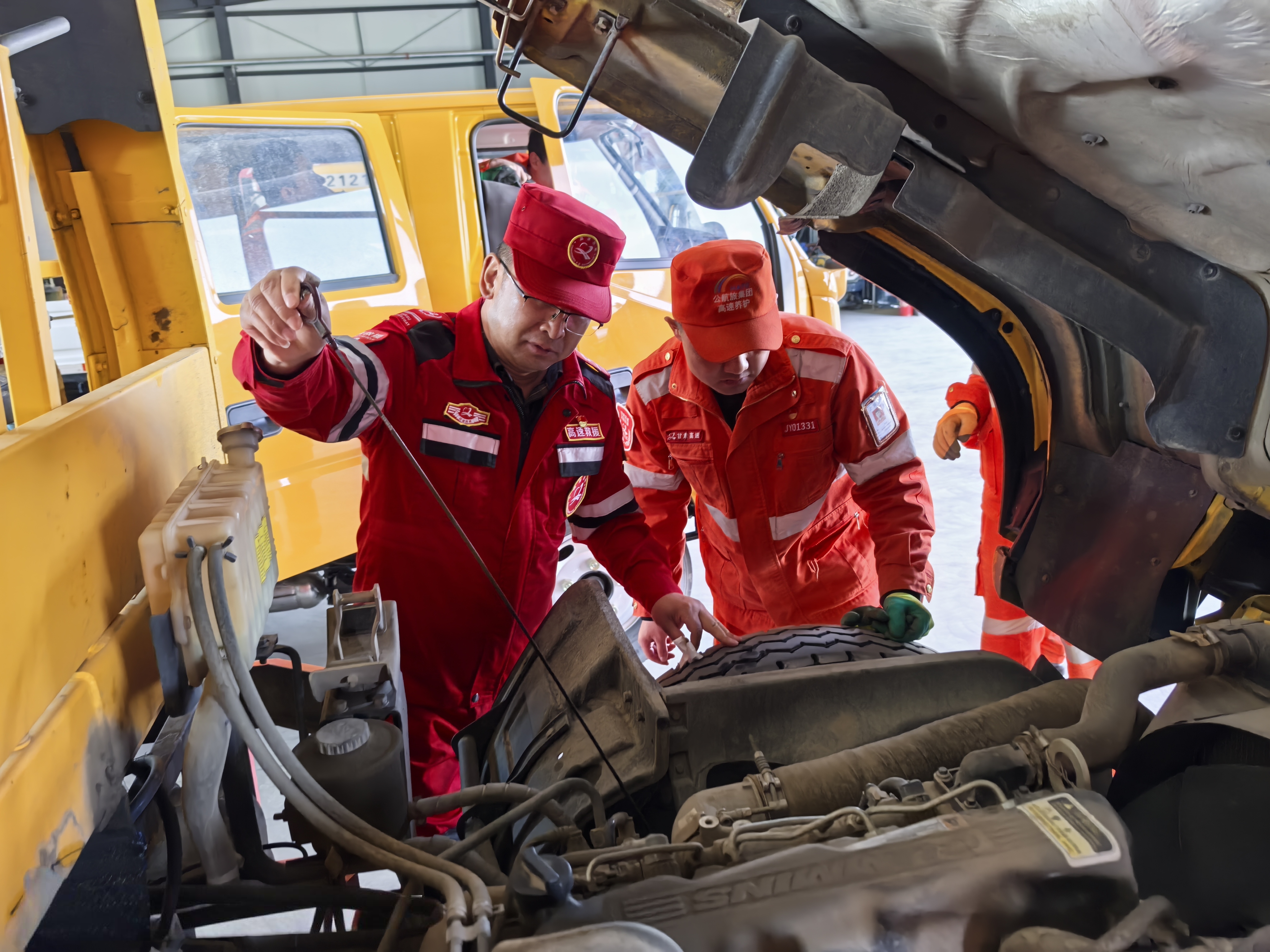 各类养护机械的良好状态是高效开展工作的基础。在养护工区,队员们对巡查车、清扫车、装载机等逐一进行细致检修保养,从底盘、引擎到电路油路,不放过任何潜在故障。严格执行“一车一档”管理制度,确保每台设备的运行、保养与维修记录清晰可查。“设备如战友,平时好好待它,关键时候它才不会掉链子。”设备操作手一边加注润滑油一边说道。