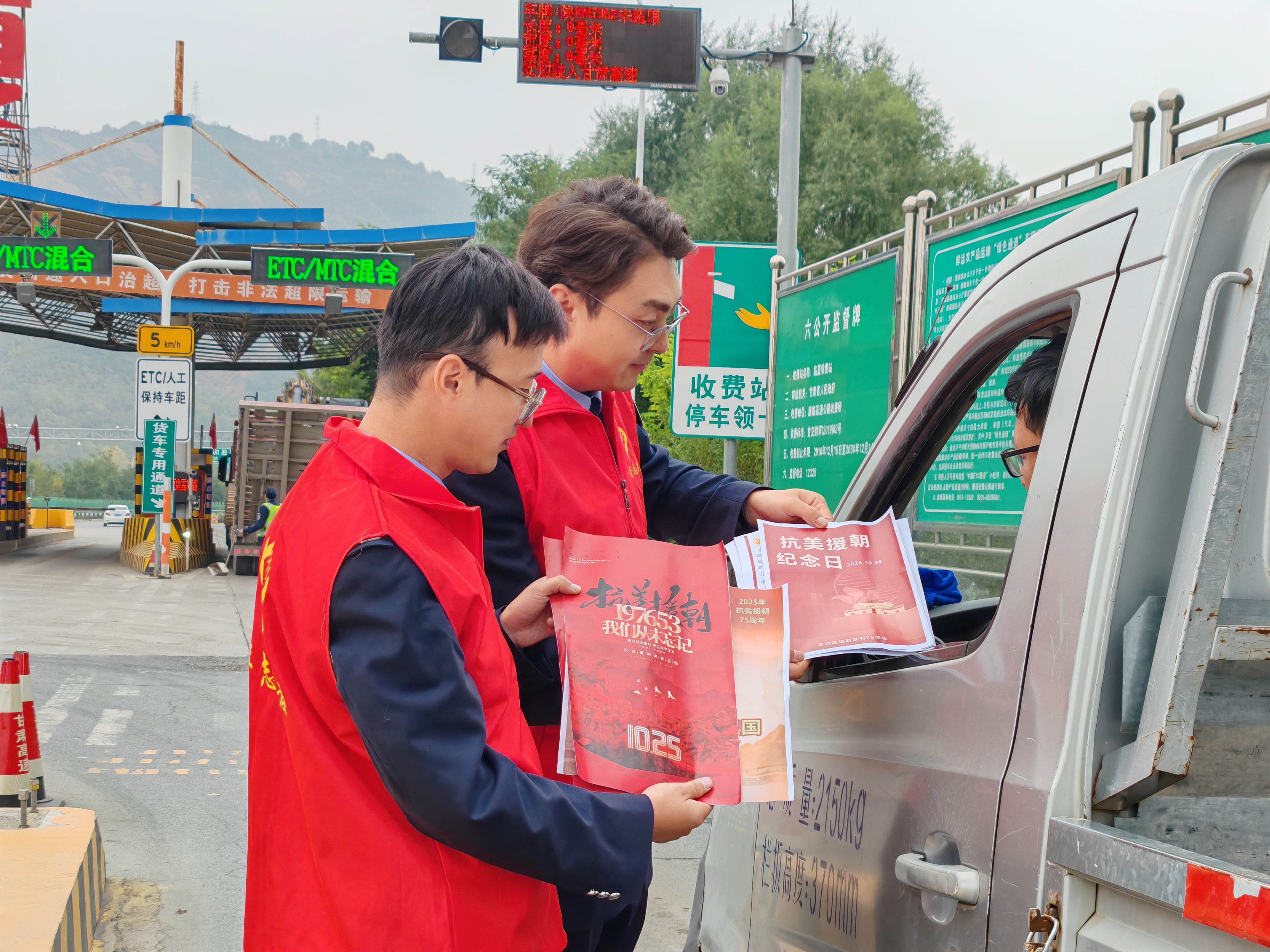 在专题学习会上,由党员骨干牵头领学《抗美援朝战史》关键章节,同步播放“上甘岭战役”“冰雕连”等经典事迹纪实短片。通过详实的史料解读与直观的影像呈现,把志愿军将士“不畏强敌、舍生忘死、保家卫国”的崇高精神具象化传递给每一位职工,引发强烈思想共鸣。学习会后,一场“岗位话担当”专题研讨随即展开,职工们围绕收费窗口服务优化、应急保通实战处置、车流高峰疏导等核心工作,深入探讨如何将志愿军“攻坚克难、敢打必胜”的战斗精神转化为提升服务质效的具体行动,现场交流氛围浓厚,凝聚起“以精神促实干”的共识。为让红色精神走出站区、触达更多群众,临夏综合养运中心创新打造“流动红色宣传站”,将宣传阵地延伸至收费广场前沿。在临夏收费站出入口收费车道设置“致敬最可爱的人”宣传岗,组织志愿者向等候通行的司乘人员发放抗美援朝历史知识手册,主动讲解经典战役背景与英雄人物事迹。不少司乘人员兴趣浓厚,主动询问历史细节,在短暂的通行间隙接受红色教育,形成“路途中学党史、服务里传精神”的良好互动氛围,让交通服务窗口成为红色文化传播的重要载体。