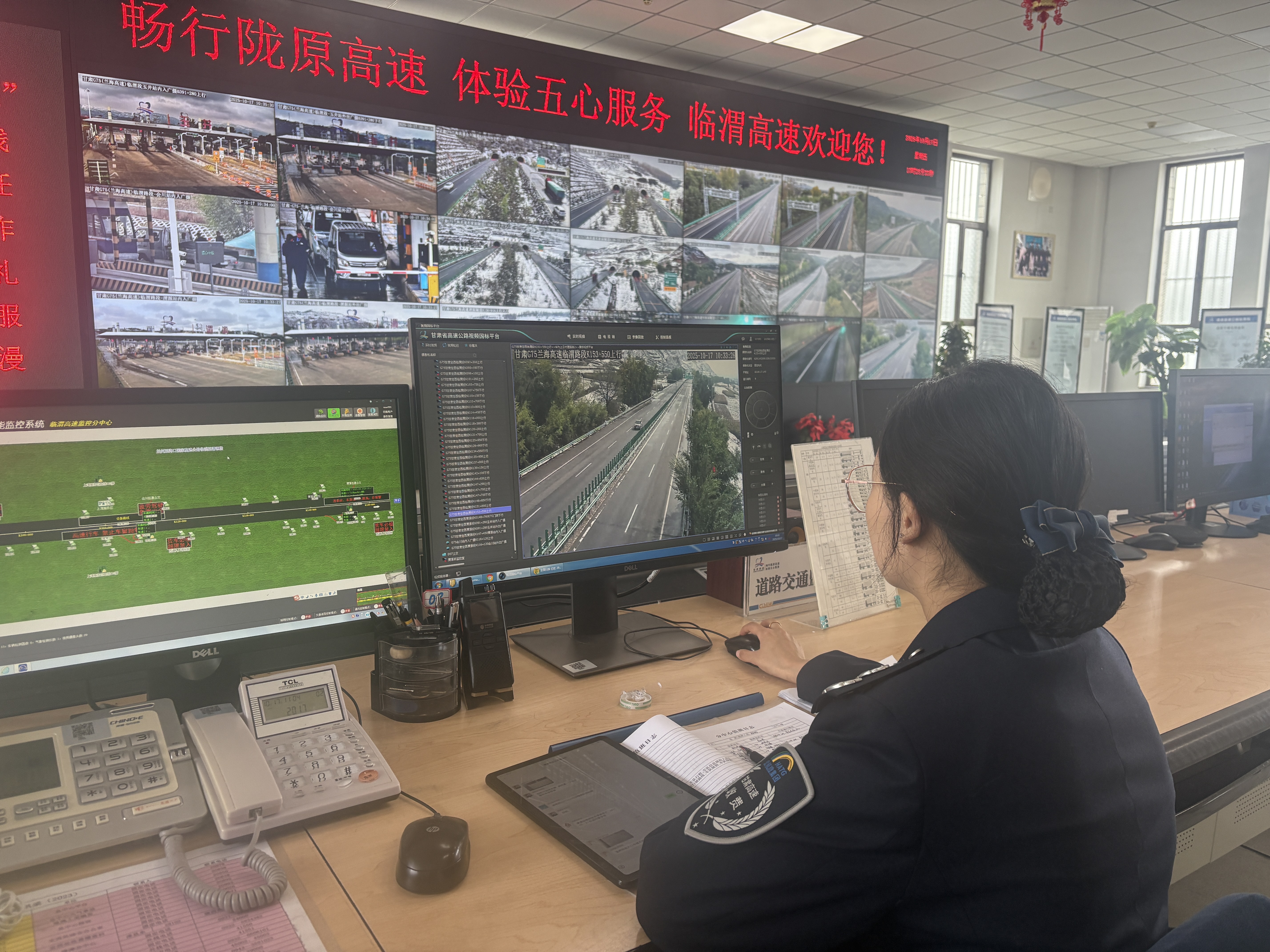 安全巡查,织密运行“监测网”。为全面掌握路面动态,定西分公司加大巡查力度,组织多支养护巡查队伍对全线进行拉网式排查,并针对桥梁、背阴路段等易结冰部位,提前在重点路段布设融雪剂和防滑料,确保应急物资提前到位。监控分中心依托视频监控系统,对长大下坡、隧道群、弯道等重点路段实施不间断视频轮巡。通过“现场巡查+视频巡查”相结合的方式,构建起全方位、立体化的路况监测体系,确保问题早发现、早预警、早处置。