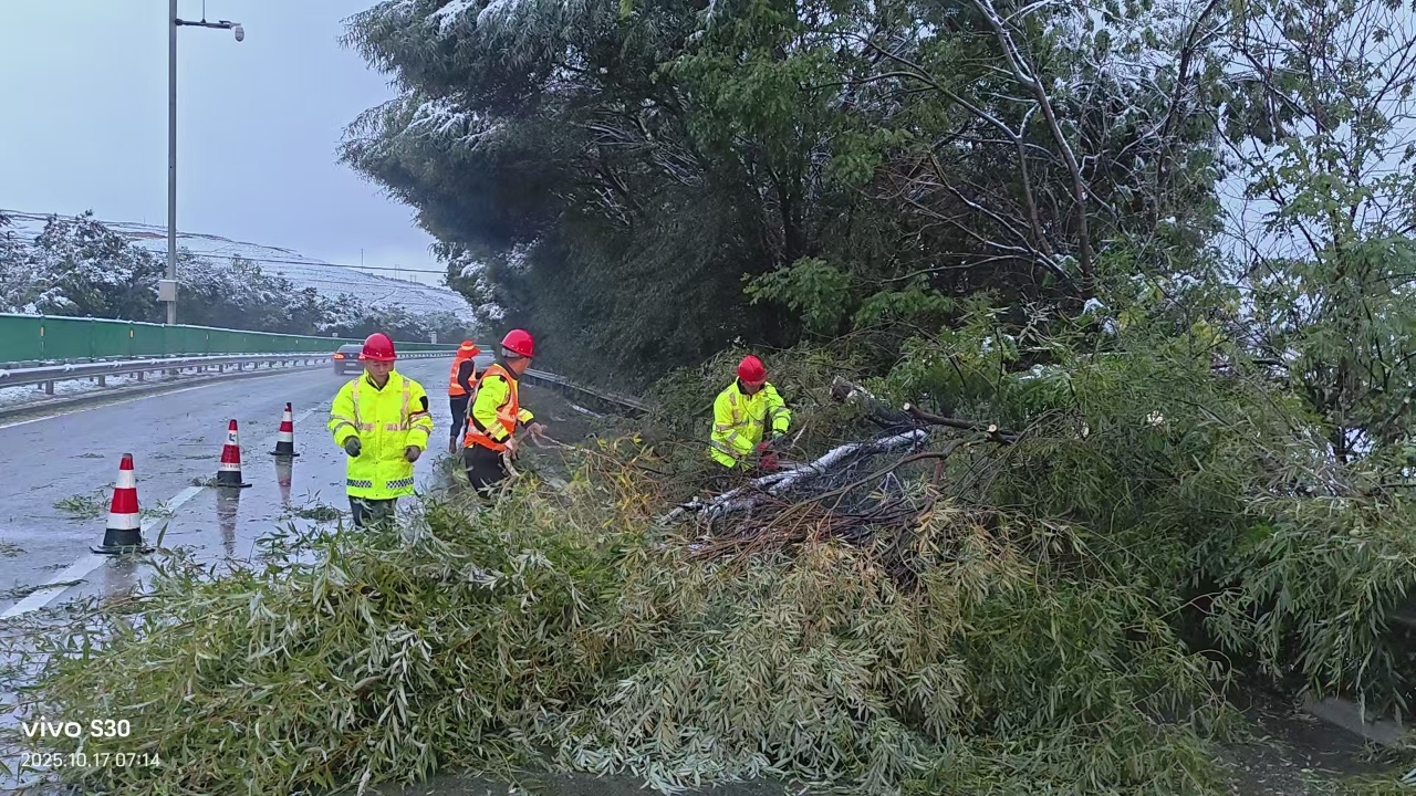 **月**日夜间至**日凌晨,伴随入秋以来最强冷空气过境,定西境内迎来今秋首场降雪天气。面对夜间复杂天气变化,公航旅高速公路运营管理定西分公司迅速启动雨雪天气应急响应,昼夜坚守,严密布防,全力打响今秋除雪保畅“第一战”,以实际行动守护辖区高速公路安全畅通。