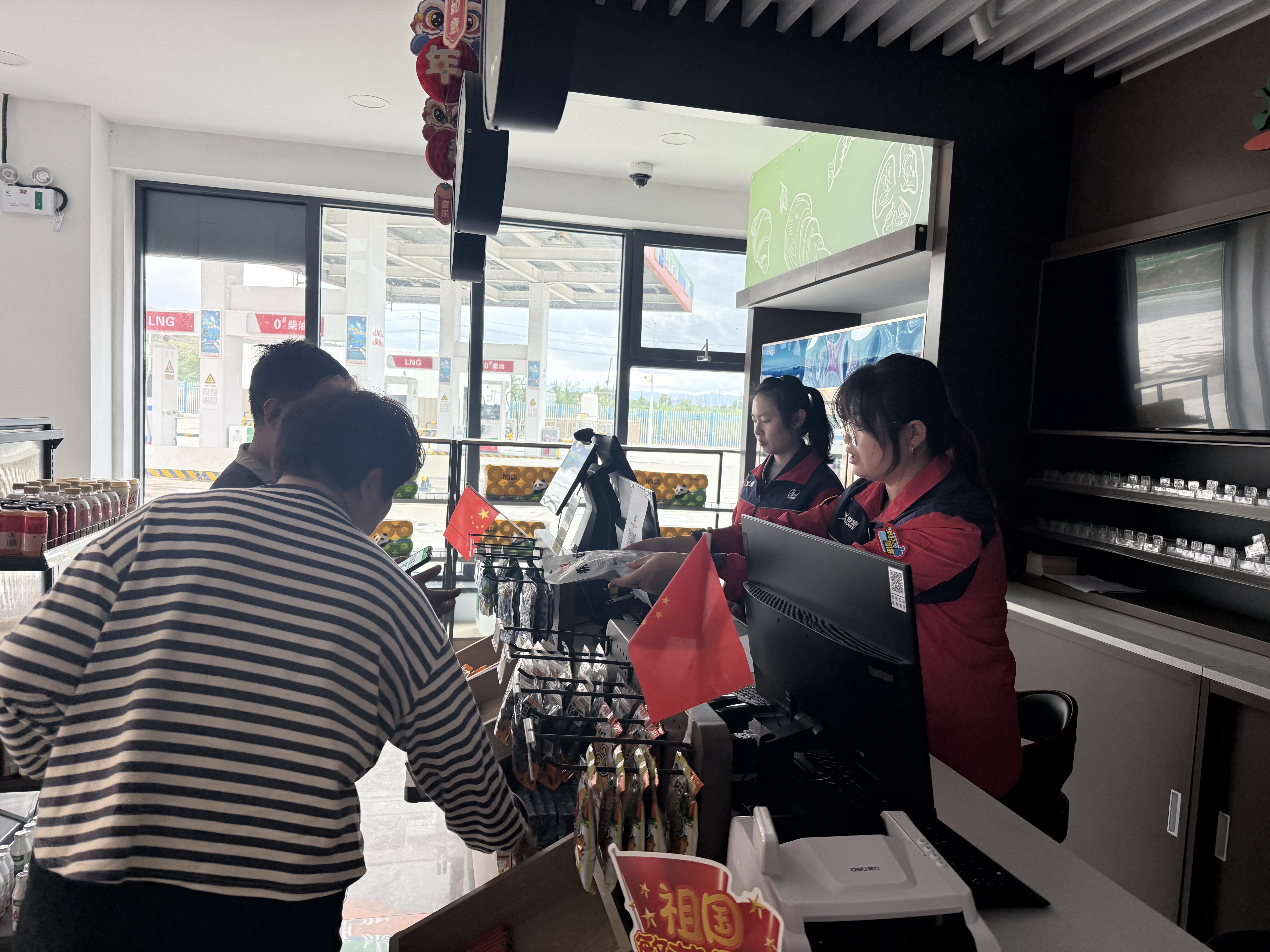 聚力保供,高效护航出行高峰。面对节假日车流骤增的考验,公司提前谋划、周密部署,各加油(气)站员工拧成一股绳协同作战。加油(气)站内车流虽大却井然有序,员工们在加油岛与便利店之间高效穿梭、默契配合,既要快速完成加油服务、确保油品供应不断档,又要兼顾顾客咨询与结算需求、避免车辆积压拥堵。同时,员工们在服务中主动与顾客沟通,耐心解答行程疑问,并结合实际推荐“油非互动”促销活动,既保障“油品不断供、服务不打烊”的承诺落地,又实现了服务与经营的双向提升。