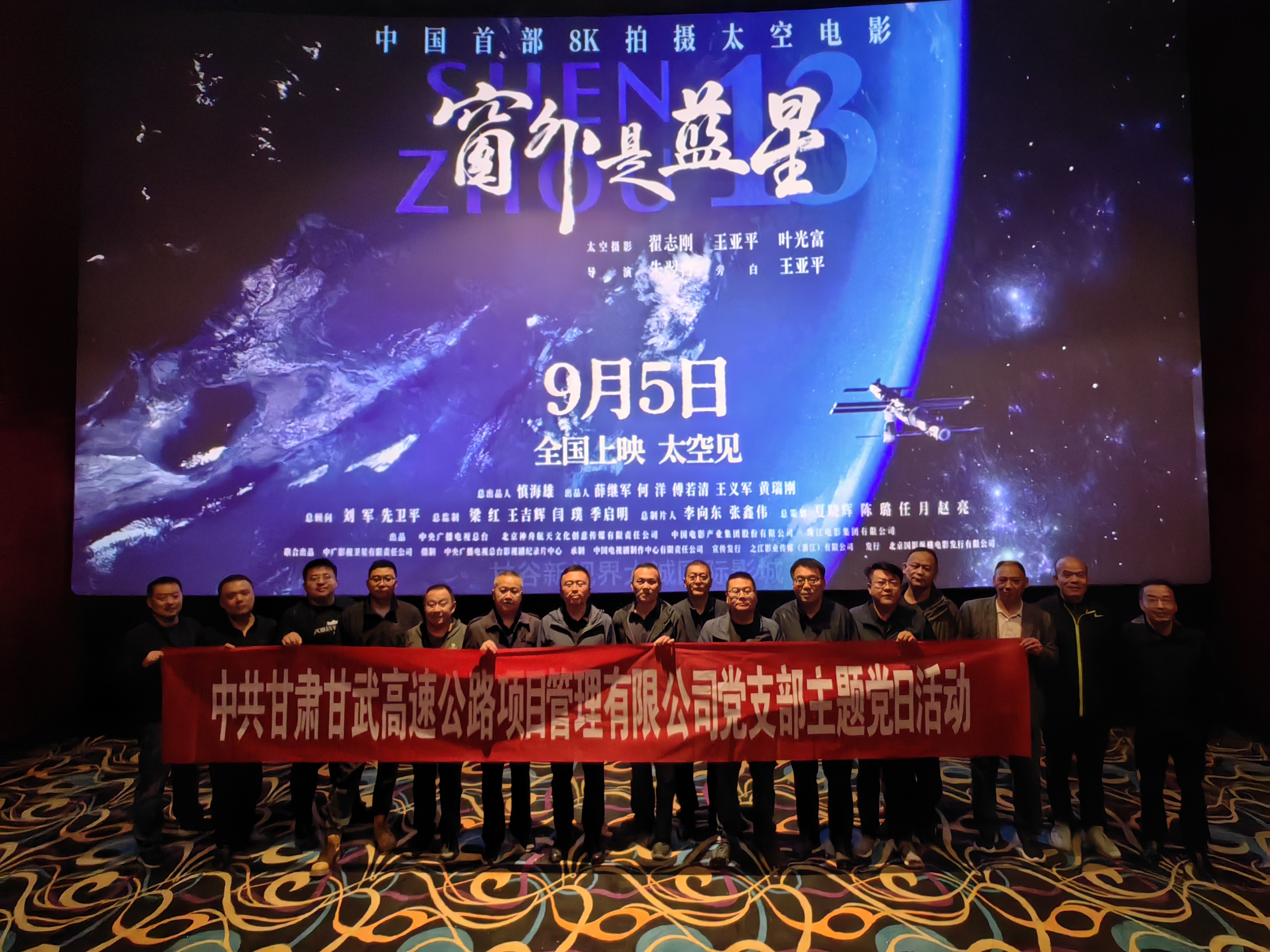 为大力弘扬爱国主义精神,进一步凝聚奋进力量、提振干事创业精气神,**月*日,甘武项目公司党支部组织支部全体党员开展集体观影活动,观看中国航天题材电影《窗外是蓝星》。