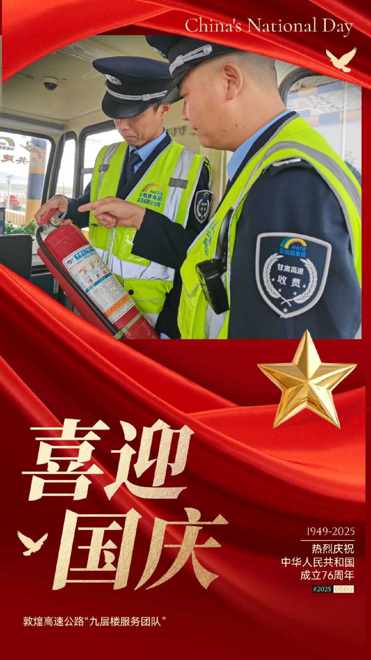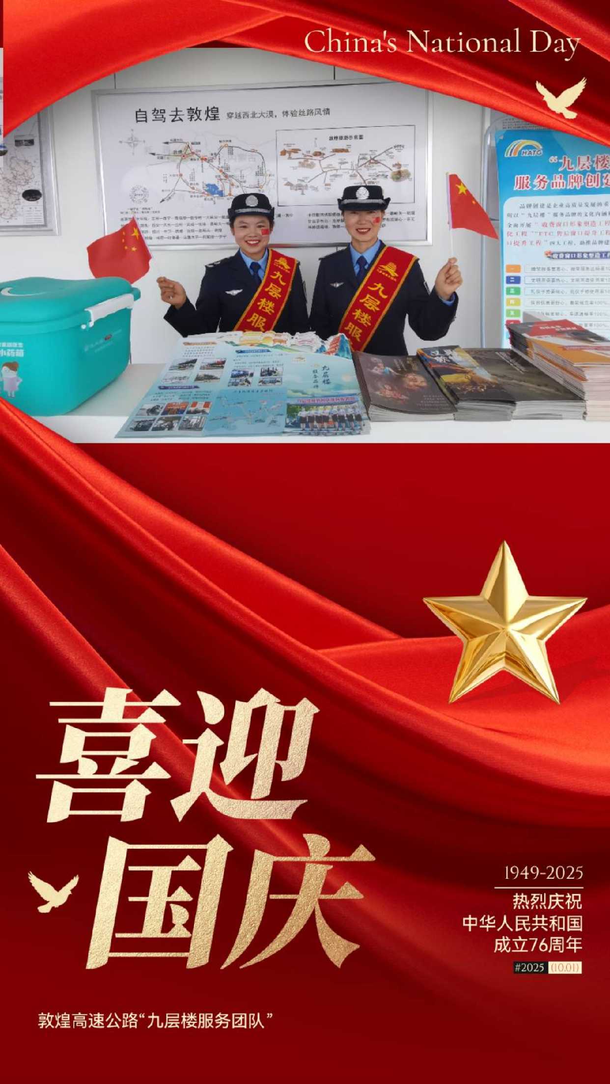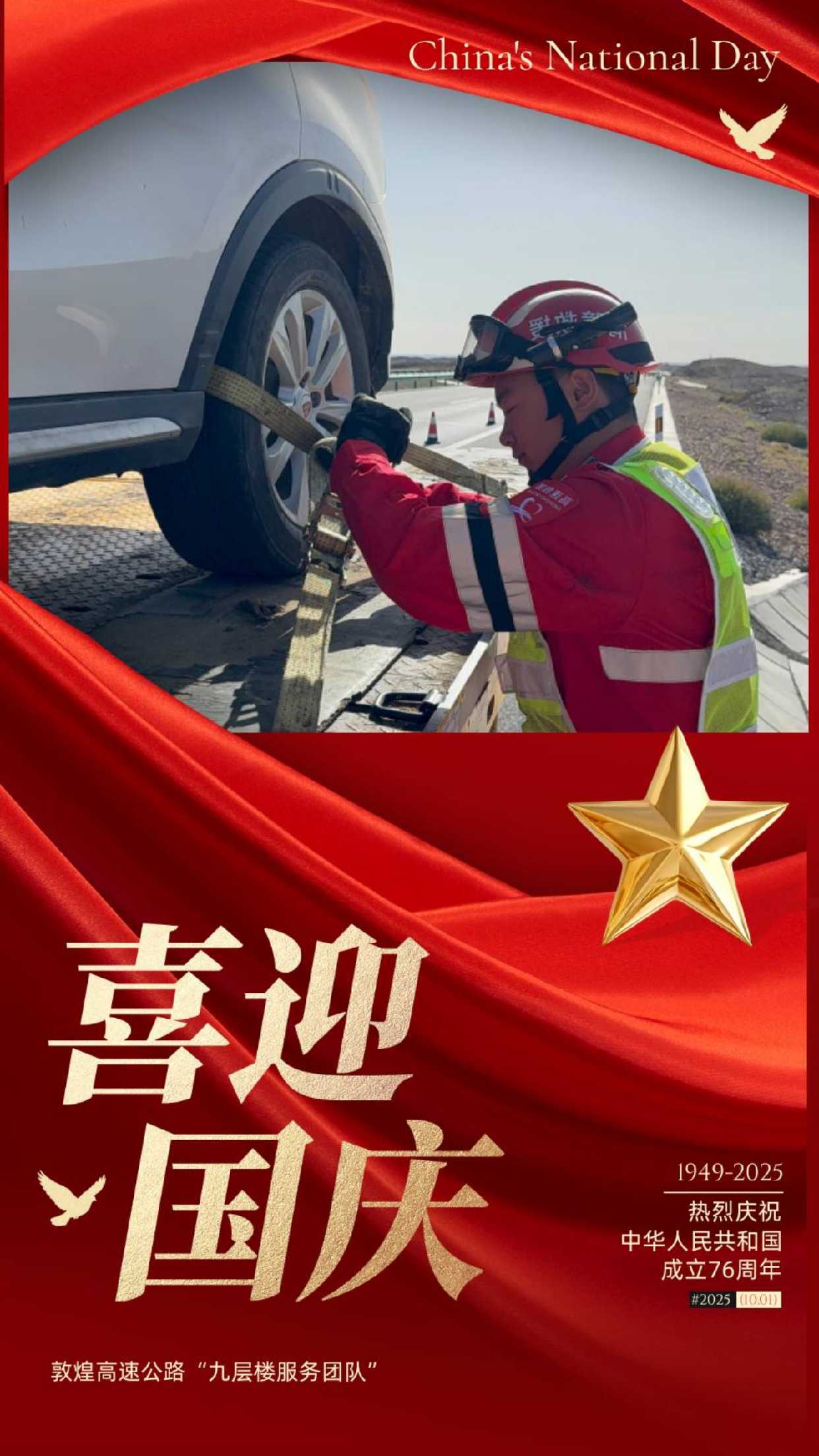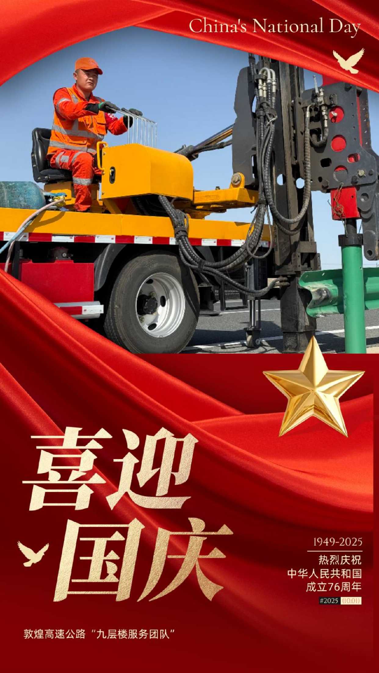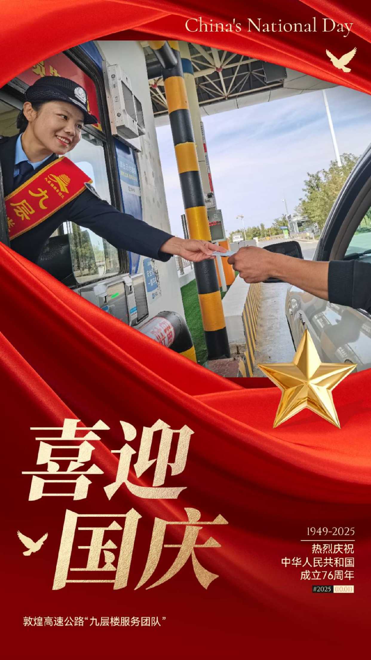 从晨光熹微到夜色深沉,从窗口微笑到公路养护,敦煌高速“九层楼服务团队”的每个岗位,都是国庆旅途上的一盏灯。他们既是道路的守护者,也是节日的献礼人。这份藏在岗位里的国庆祝福,愿能伴您一路坦途,共赏家国盛世风光。