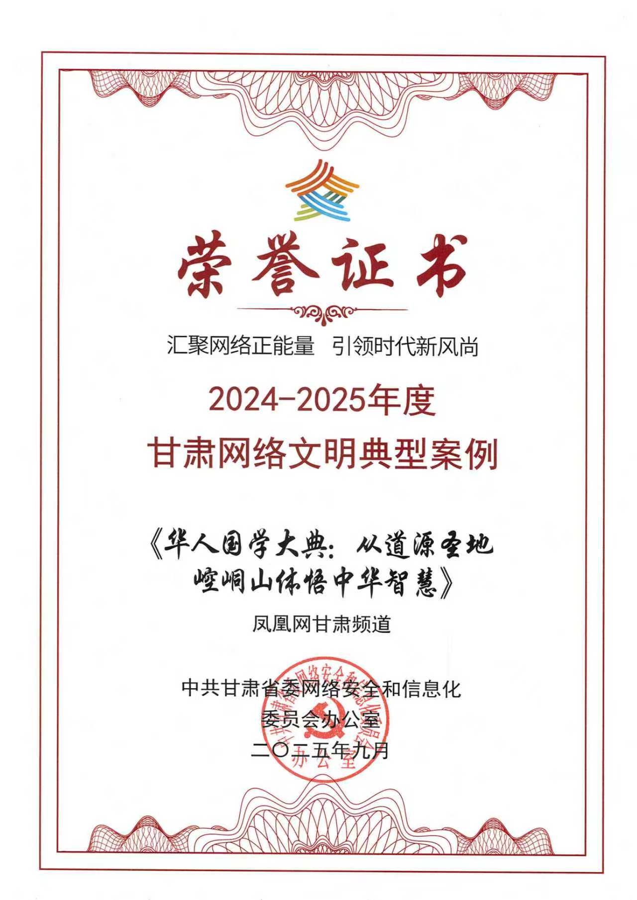 近日,中共甘肃省委网络安全和信息化委员会办公室正式公布“*********年度甘肃网络文明典型案例”评选结果,由凤凰网甘肃频道和平凉文旅投公司联合策划推出的《华人国学大典:从道源圣地崆峒山体悟中华智慧》成功入选。这一荣誉不仅是对该活动在传播中华优秀传统文化、凝聚网络正能量方面突出贡献的高度认可,更成为崆峒山景区依托系列文化活动推进品牌建设、实现文旅高质量发展的有力见证。