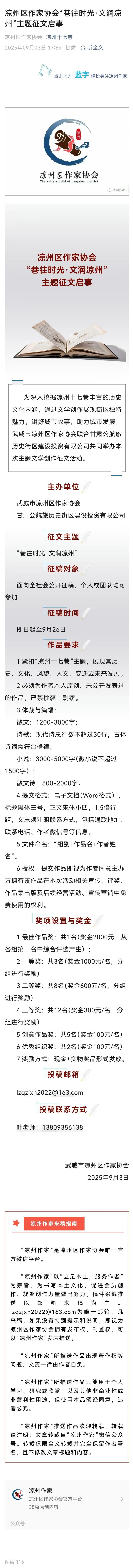 凉州区作家协会“巷往时光·文润凉州”主题征文启事