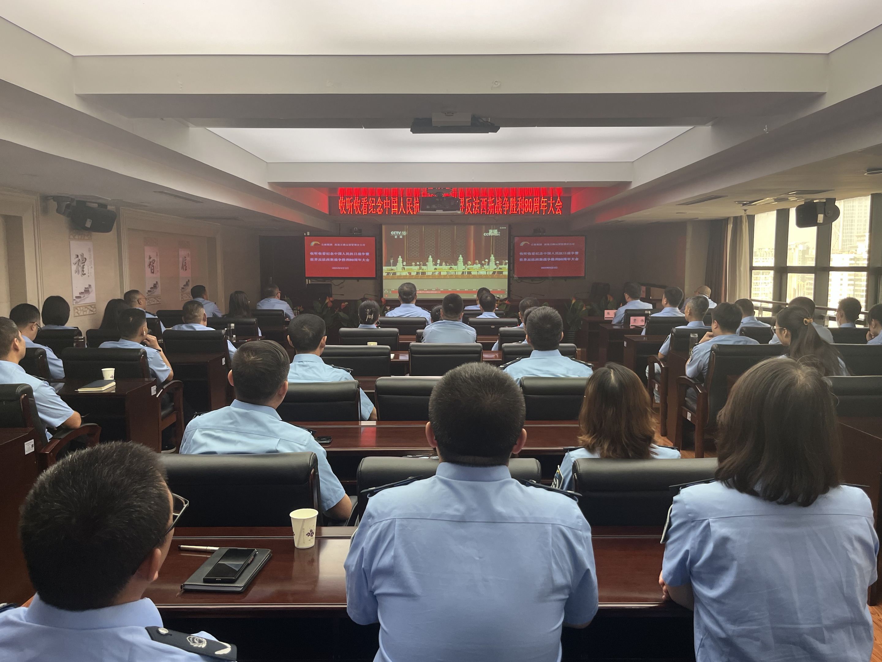 公航旅高速公路运营管理分公司集中组织收看纪念中国人民抗日战争暨世界反法西斯战争胜利80周年大会盛况