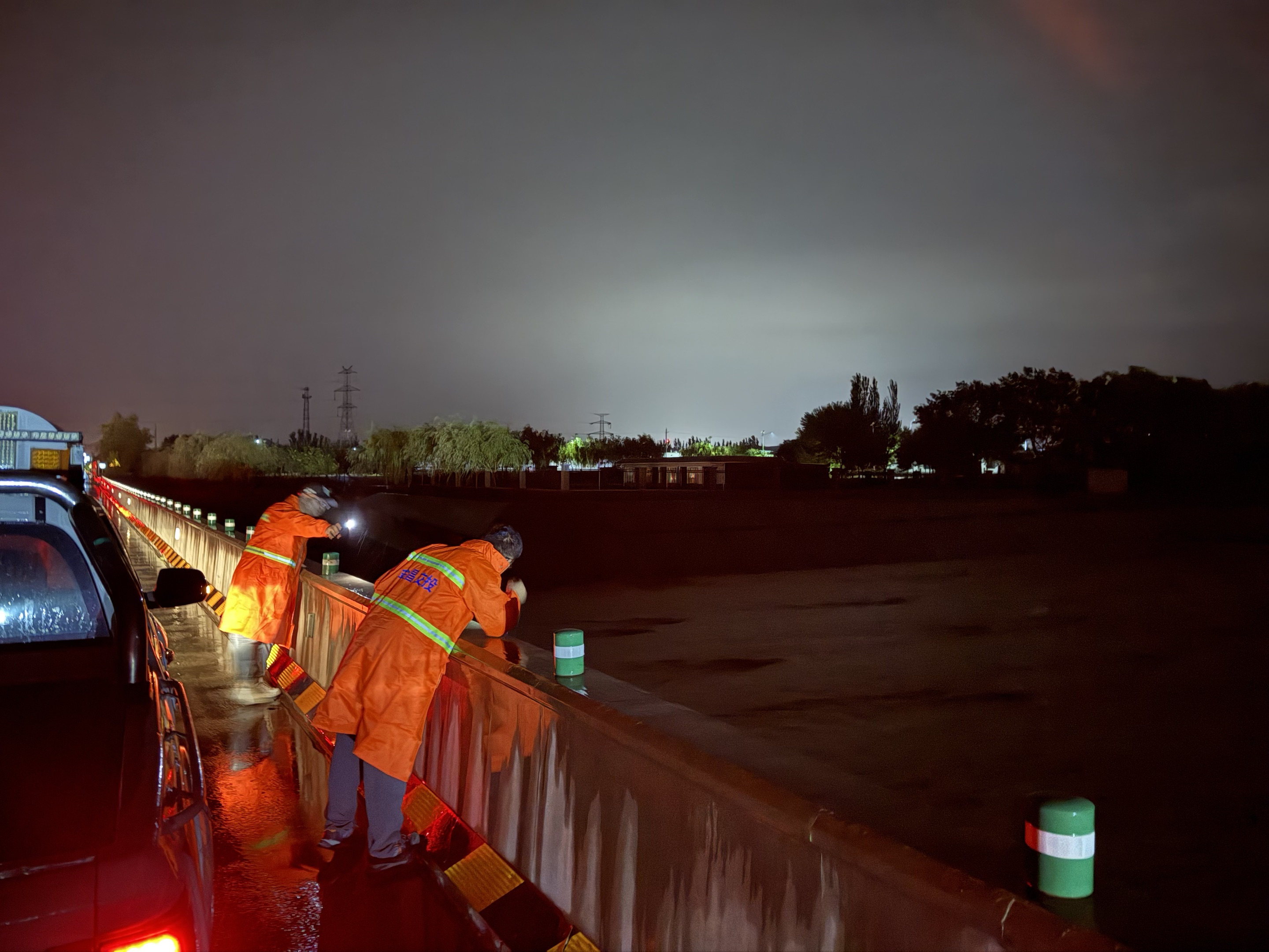 雨中巡查,筑牢安全防护网。*月**日**时**分,金昌市出现短时强降雨天气。公司严格执行**小时值班值守和领导带班制度,以“动态巡查、快速处置”措施守护道路畅通。****金永段及****红下段全线降雨期间,养护人员加密巡查频次,对桥函、高边坡、易积水路段开展“地毯式”排查,迅速清理小型落石、路面洒落物等隐患。各收费站、监控中心、巡查养护中心紧密配合,在雨中巡查中筑牢安全防线。