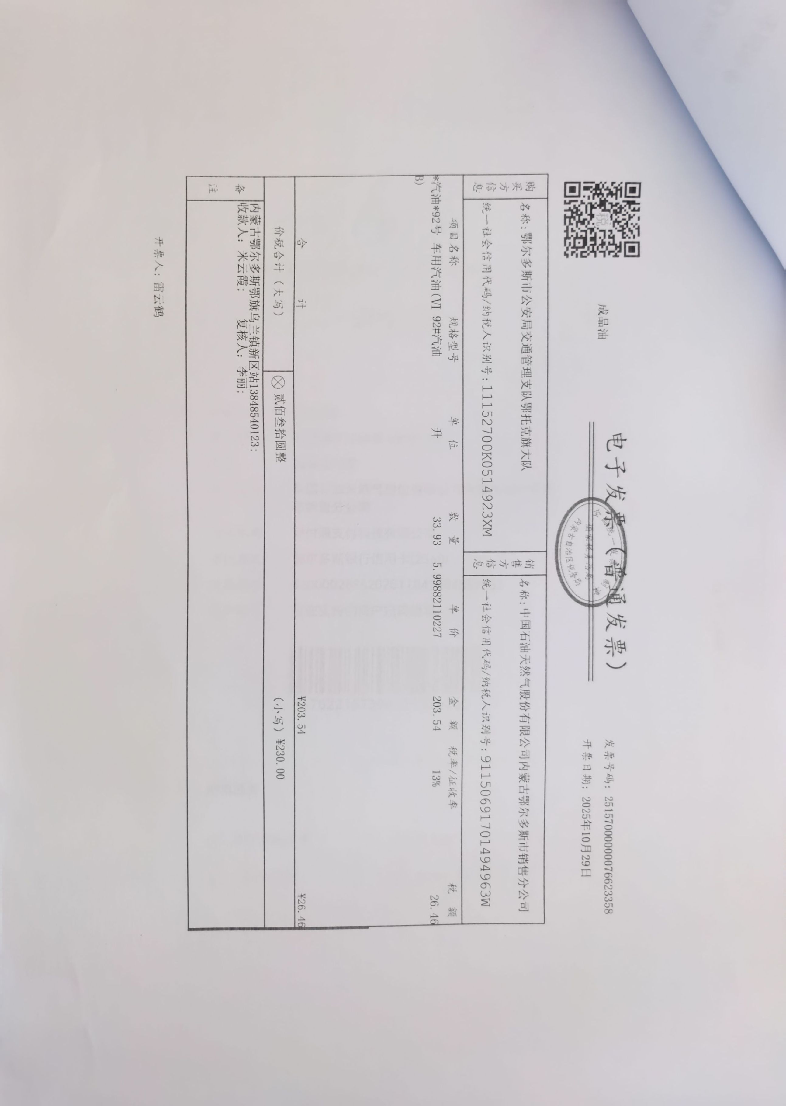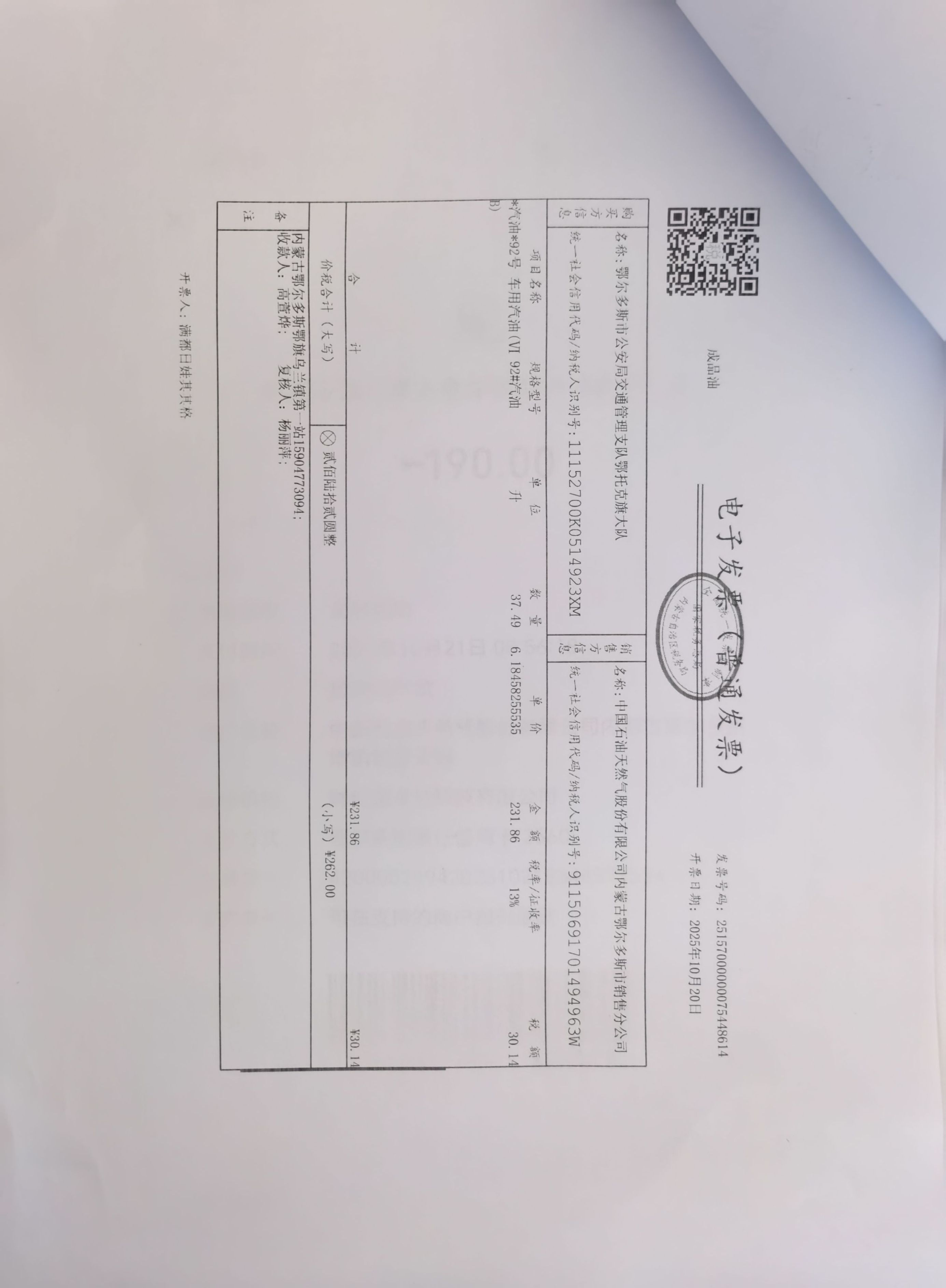 鄂尔多斯市公安局交通管理支队鄂托克旗大队鄂旗交管大队车辆燃油费政府采购...