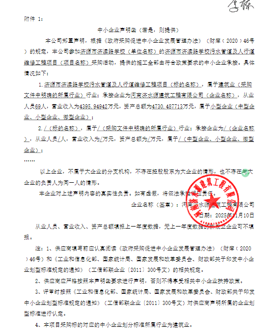 | *、采购项目名称:济源市济渎路学校污水管道及人行道维修工程项目 | |||||||||||||||||||||||||||||||