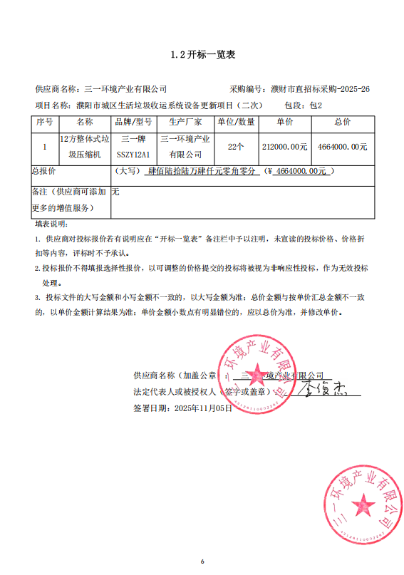濮阳市城市环境卫生事务中心濮阳市城区生活垃圾收运系统设备更新项目(二次)-结果公告